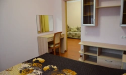 Комфортное размещение в жилой секции по типу однокомнатной квартиры с отдельным входом. Вам будет доступна полностью меблированная комната, собственная оборудованная кухня и раздельный сан. узел, а также полный комплект бытовой техники. Площадь квартиры - 38 метров!