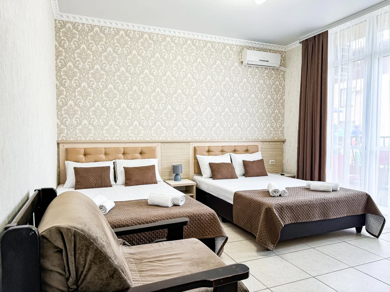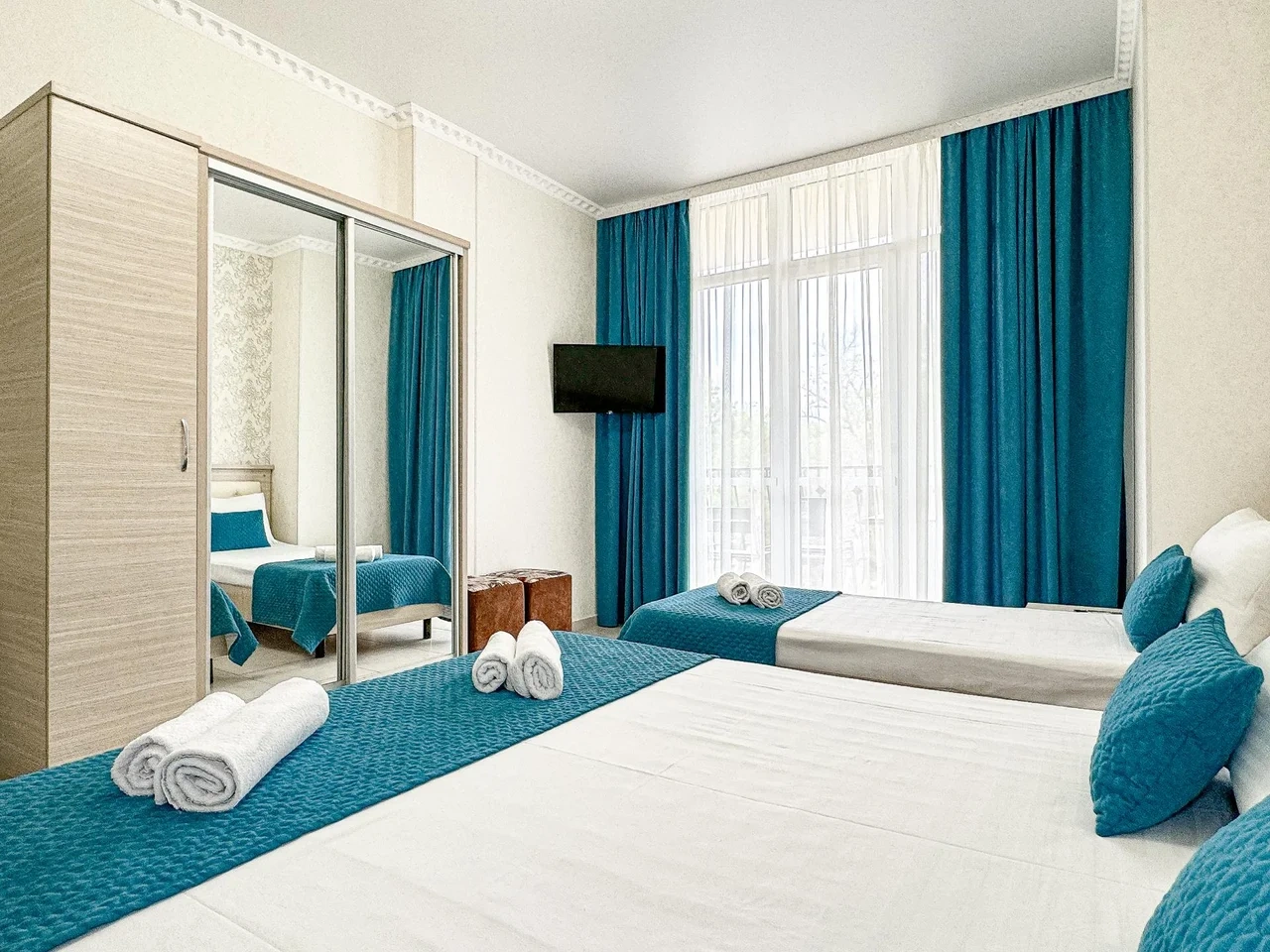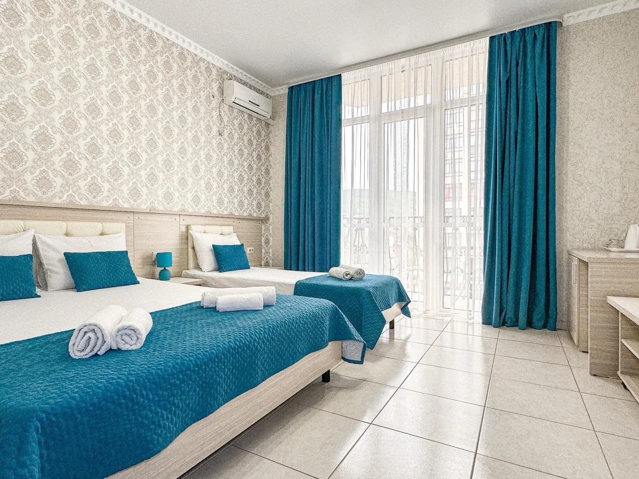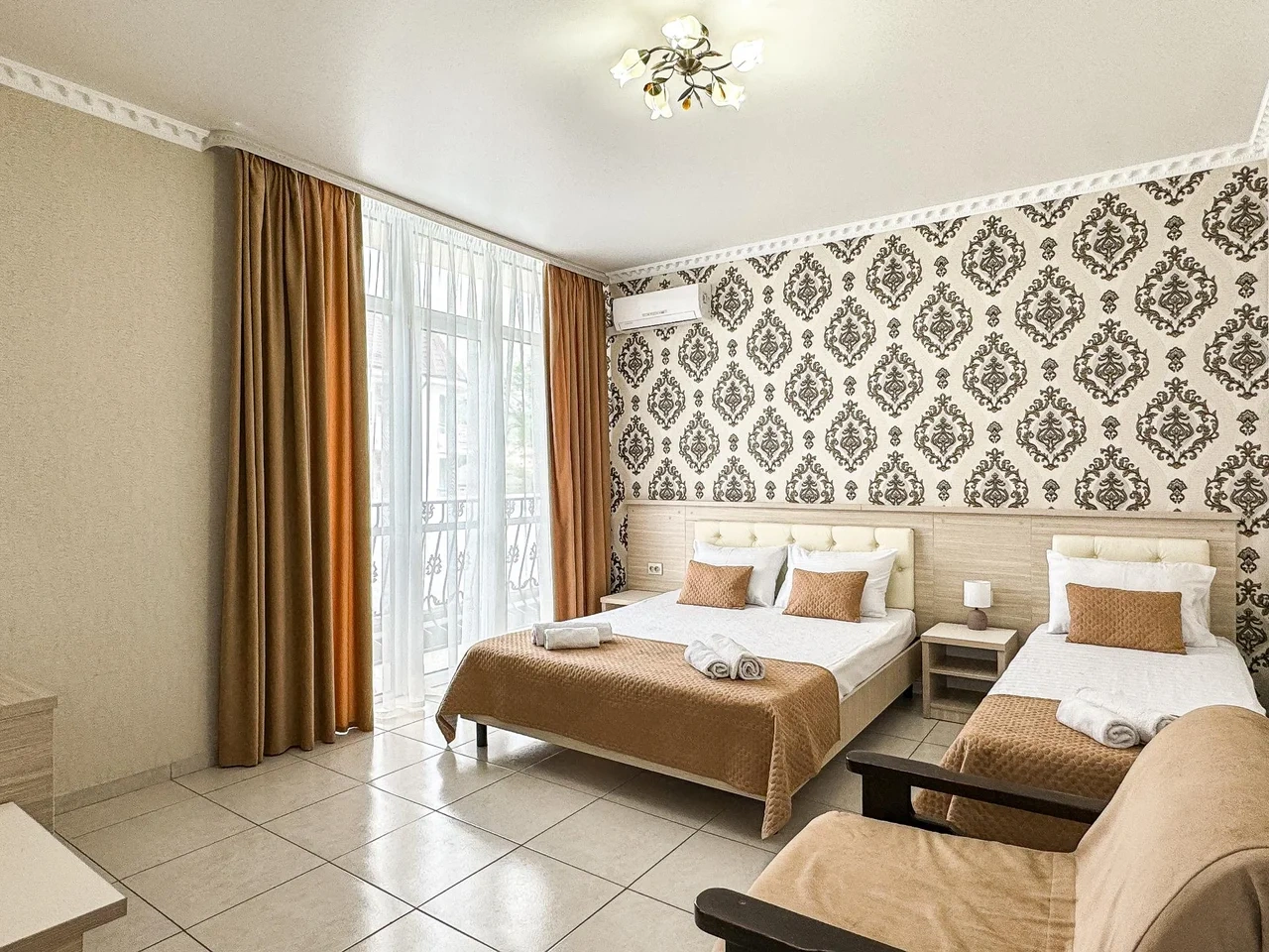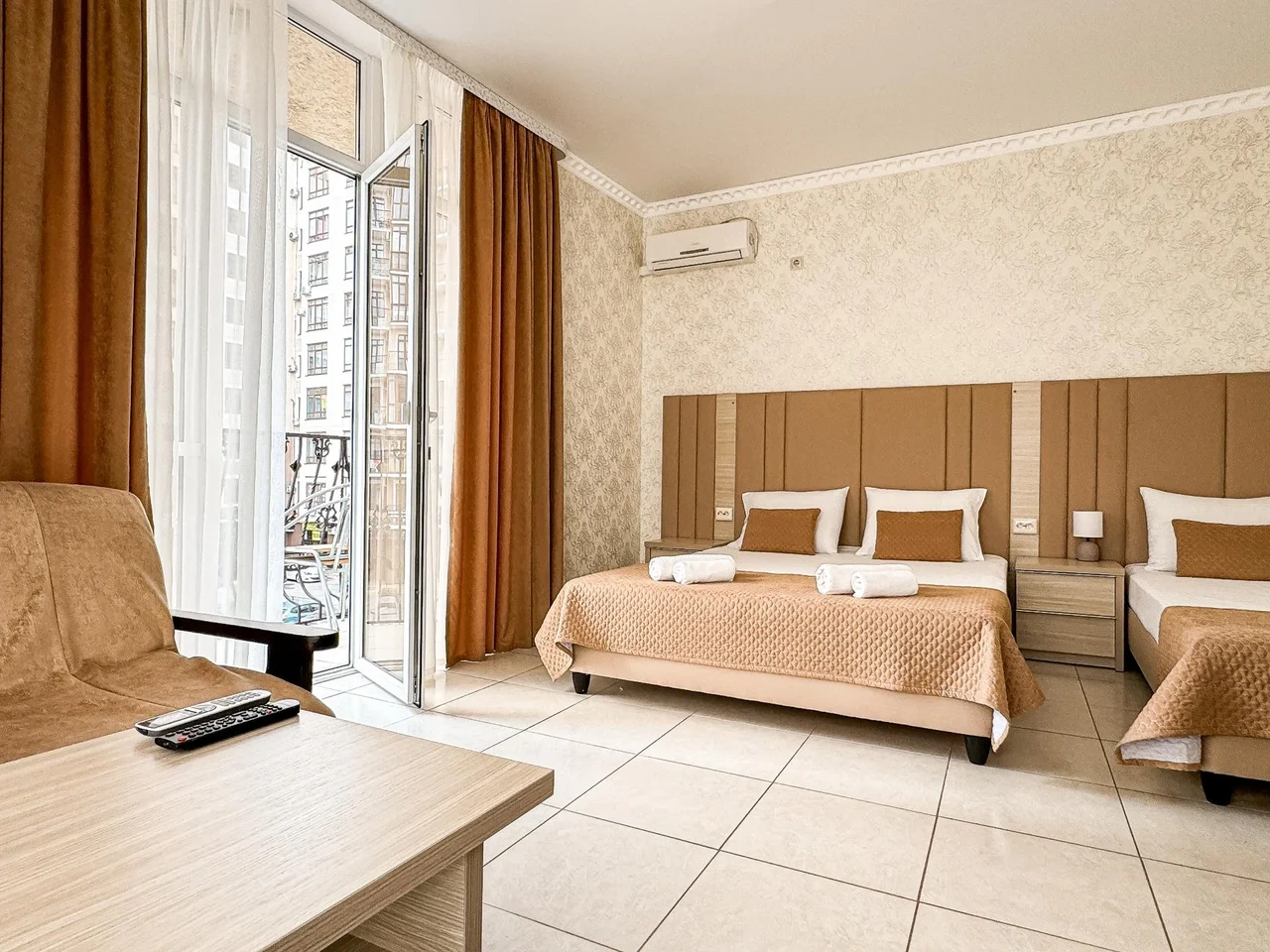 Номер трехместный с балконом с двуспальной и односпальной кроватями