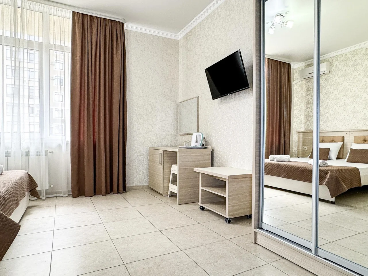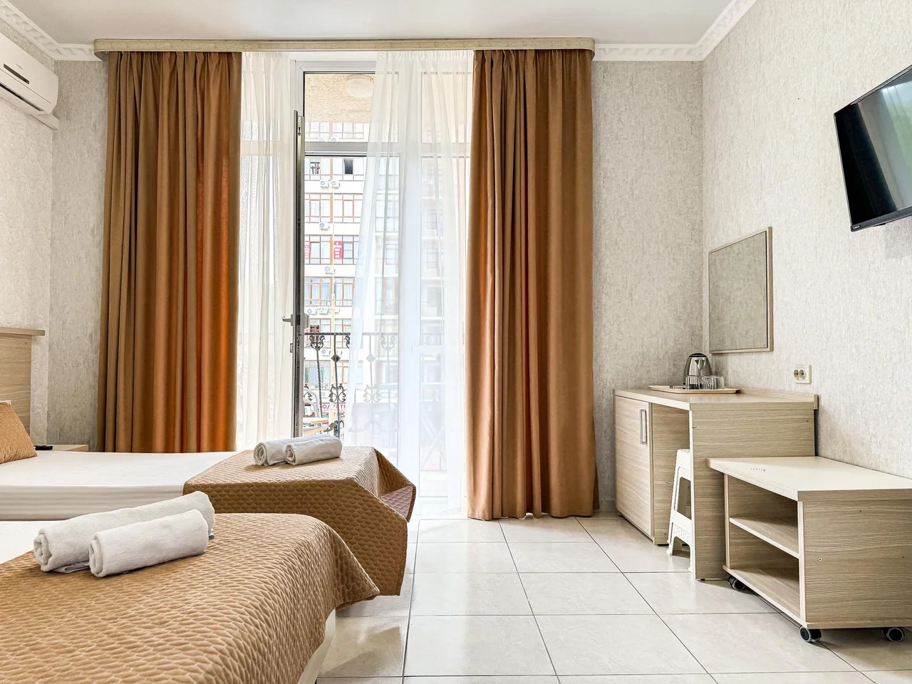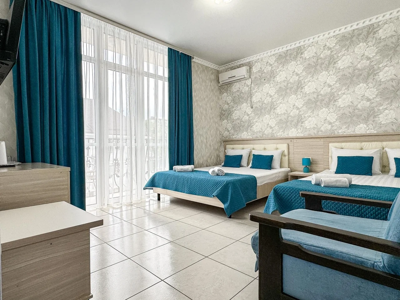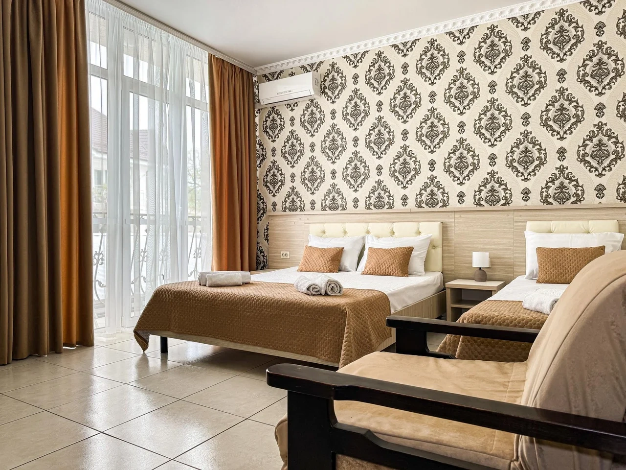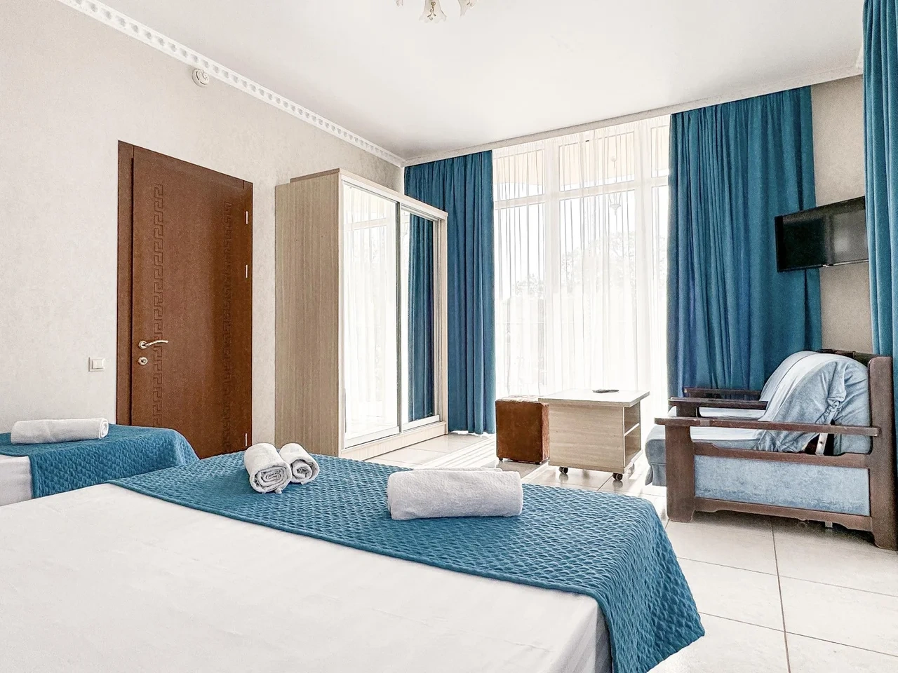 Номер трехместный с балконом с двуспальной и односпальной кроватями