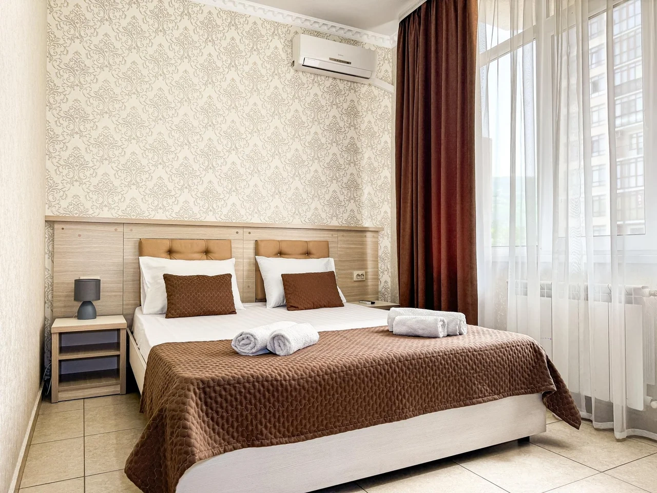 Двухместный номер без балкона (1 этаж) с двуспальной кроватью