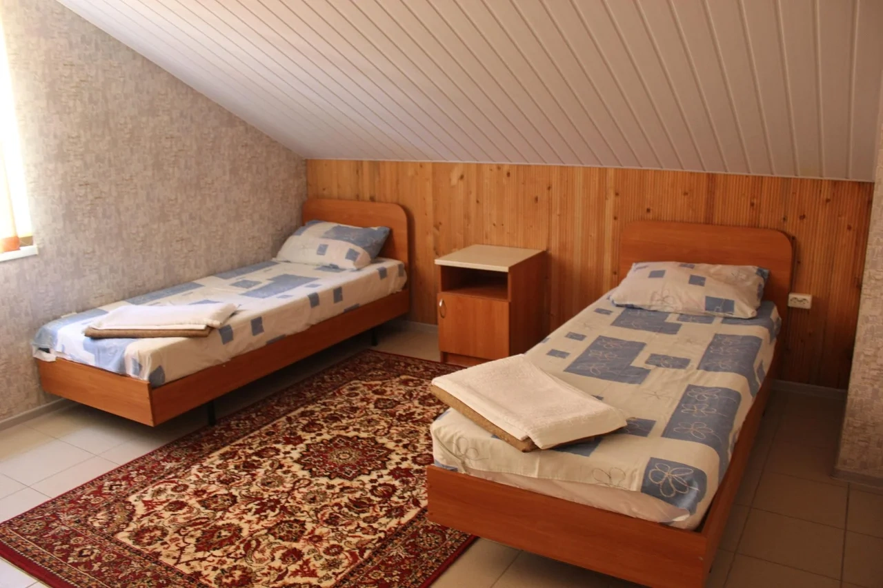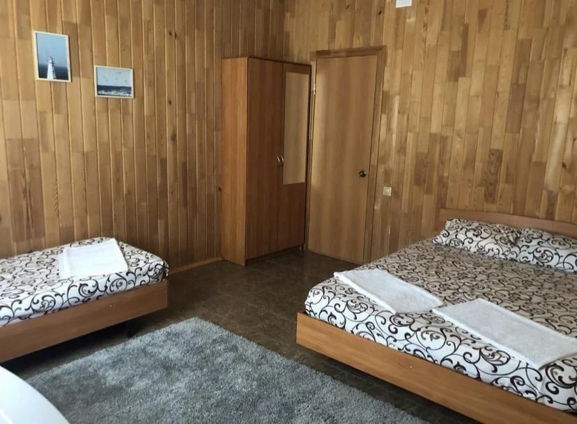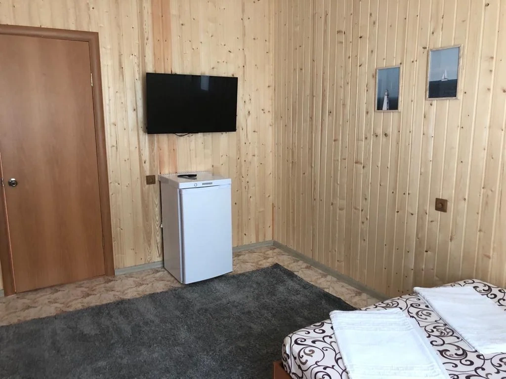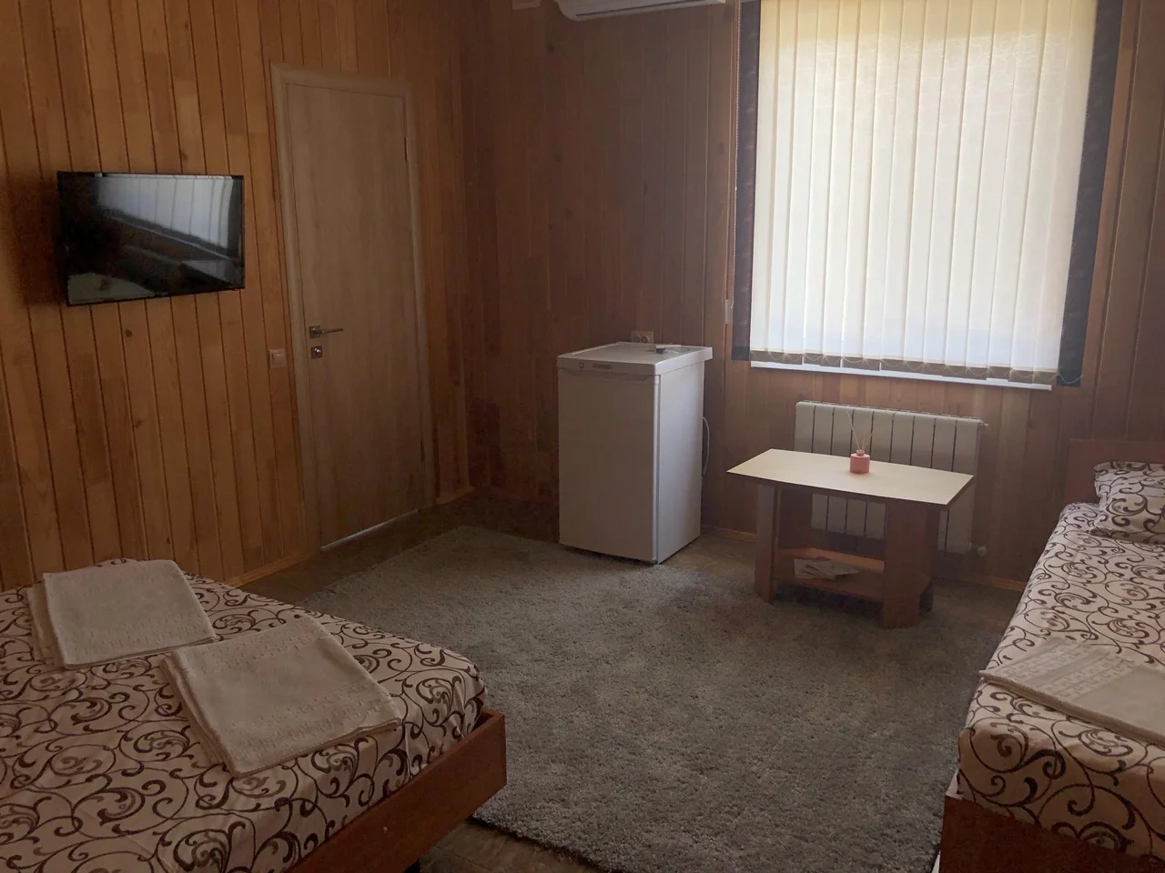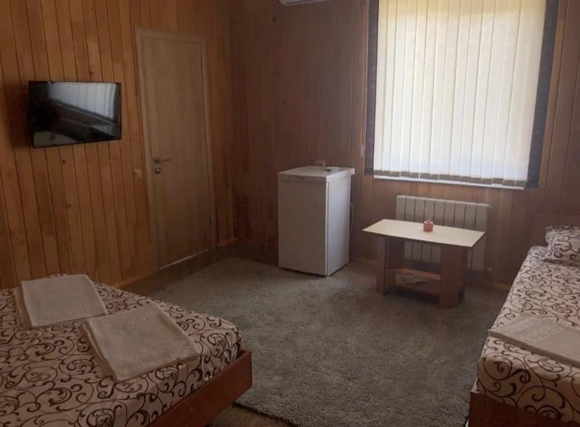 В номере 2х и 2 односпалки телевизор холодильник шкаф столик душ и туалет в номере