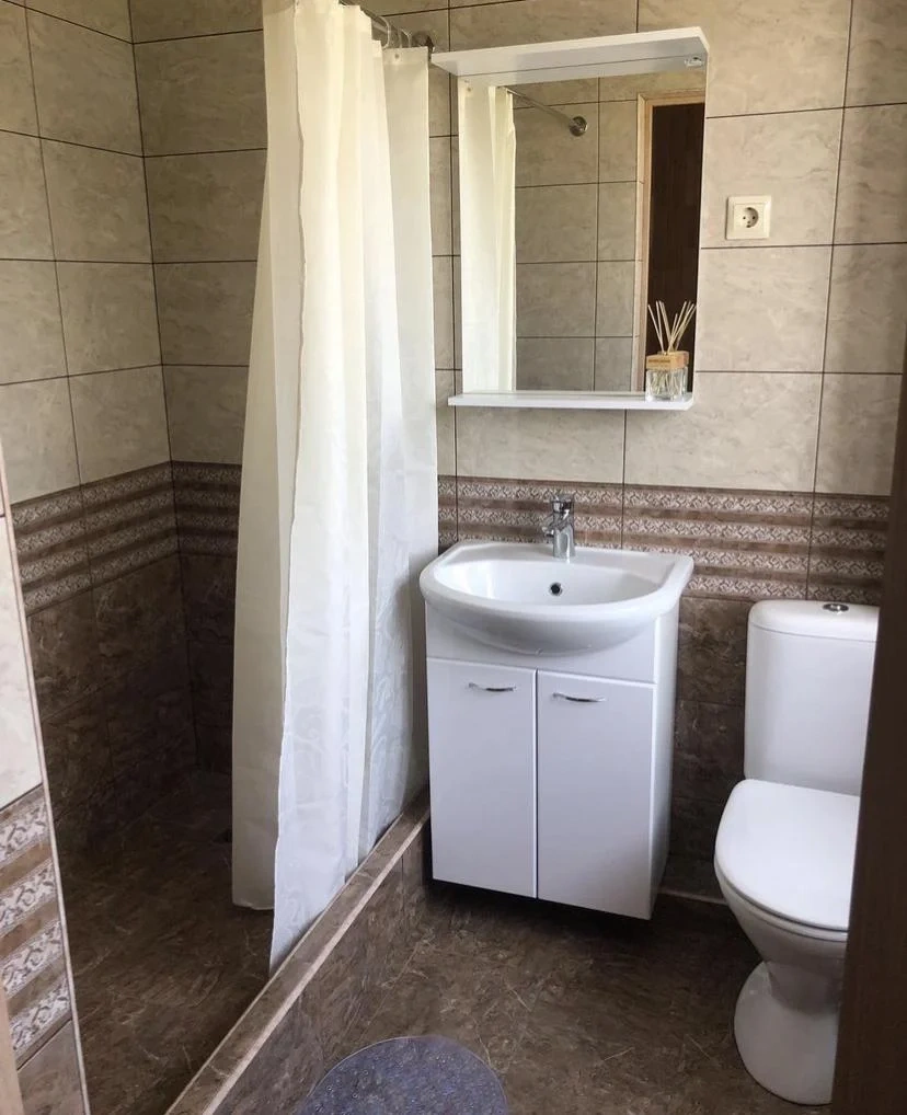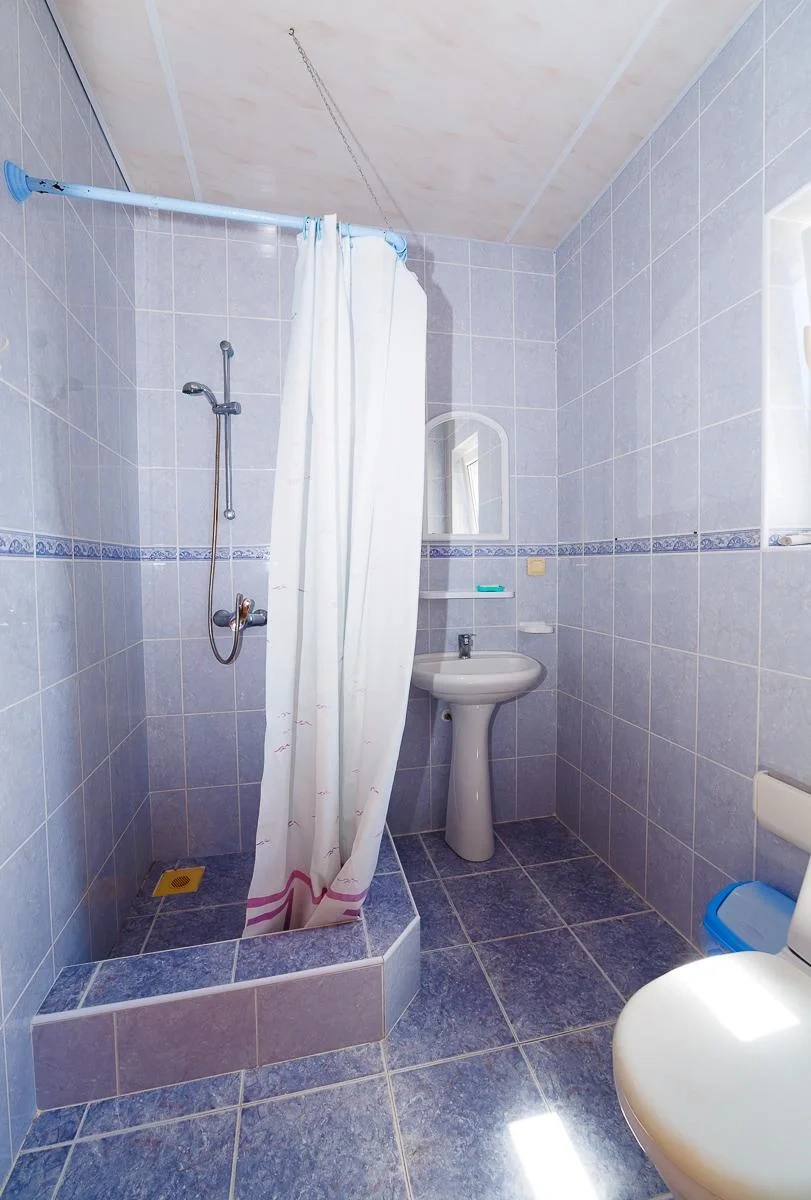 почему-то выбранный нами номер на месте оказался двухместный (хотя в параметрах мы указывали 2х взрослых и ребёнка), за раскладывающийся диван( на котором спать невозможно, давно просится на мусорку) нам пришлось доплатить по 1000 за ночь. матрасы на кроватях тоже не первой свежести, почувствовали все пружины, мебель и сантехника уставшие, раковина со сколом, постельное белье очень старое, но чистое. до моря пешком очень далеко, да и в этом районе туристическая инфраструктура практически не развита.