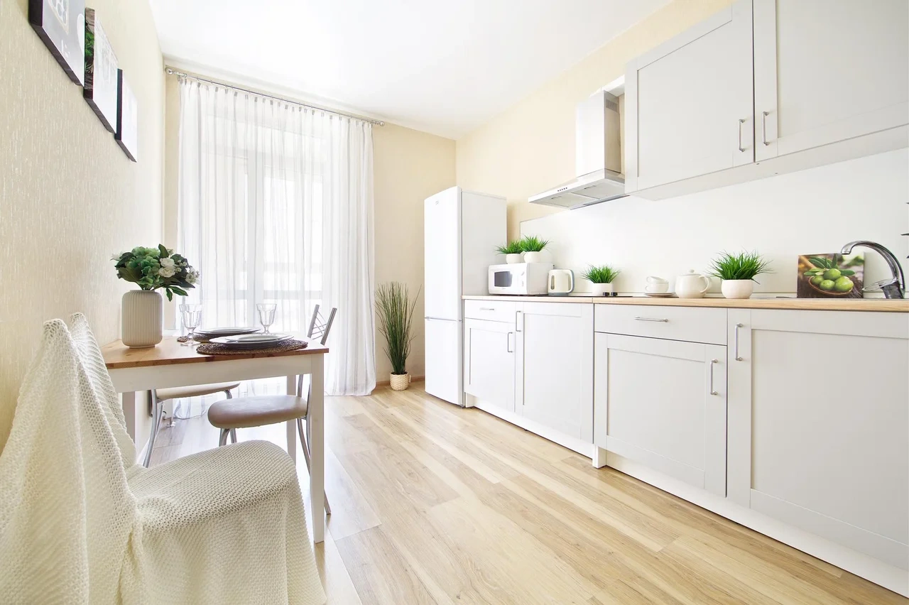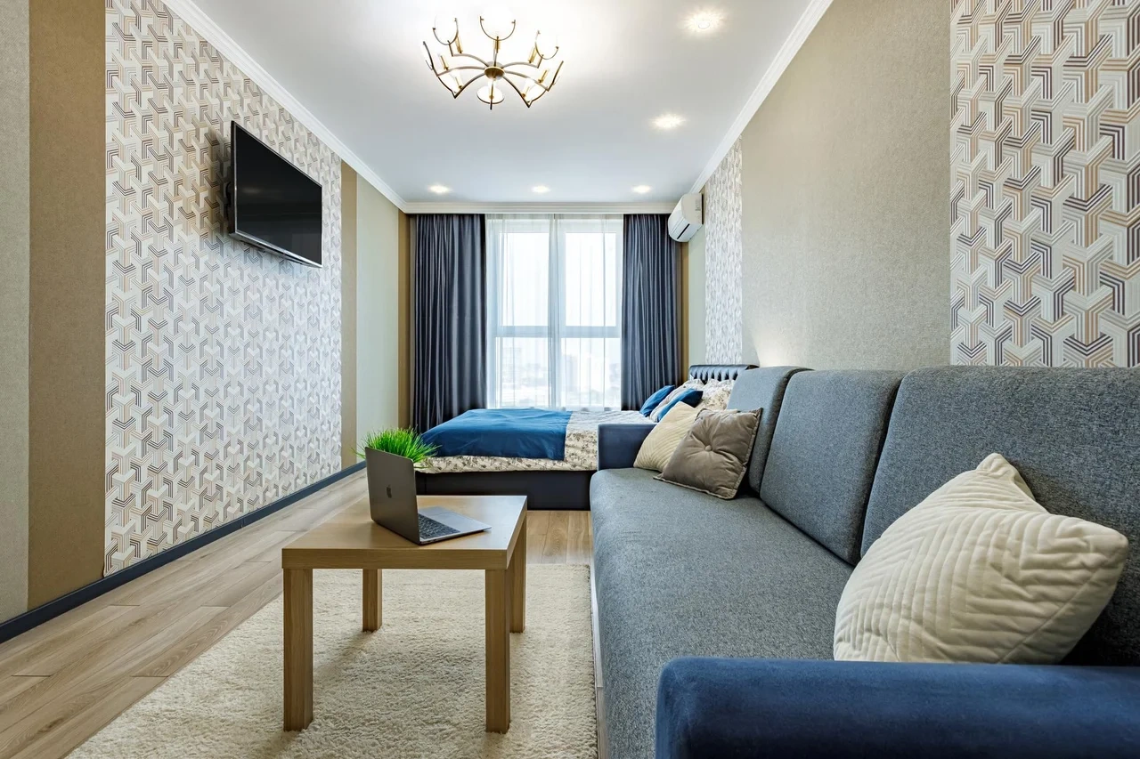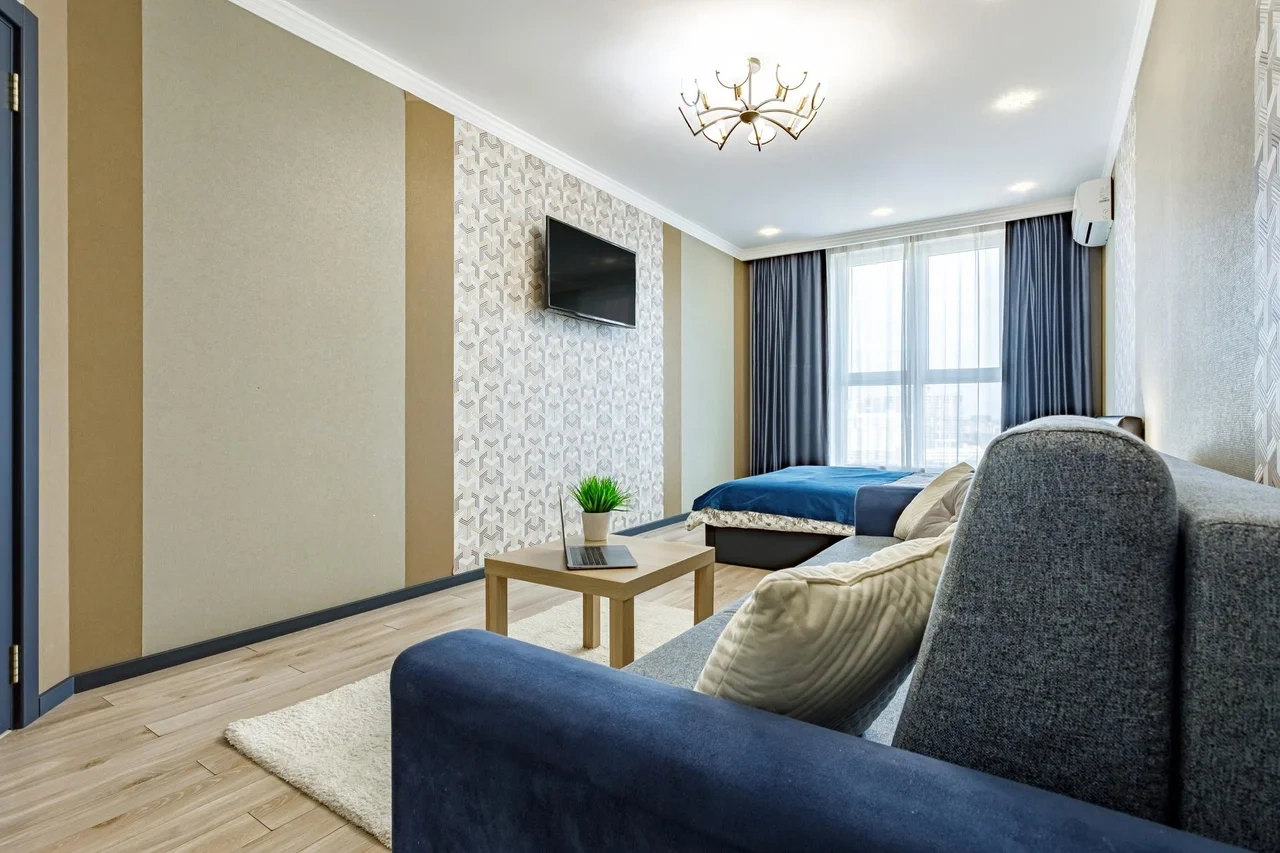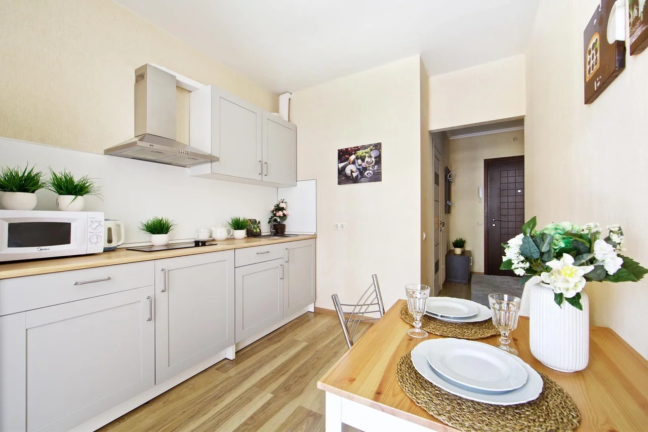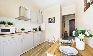 Есть все для комфортного проживания. Комната: диван, телевизор, шкаф, журнальный столик. Кухня: обеденный стол, стулья, кухонный гарнитур, электроплита, холодильник, микроволновая печь, электрочайник, посуда и кухонные принадлежности. Санузел: ванная, стиральная машина. Интернет: беспроводной Wi-Fi , кабельное телевидение.