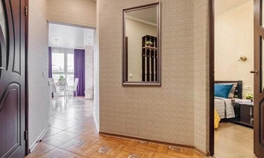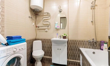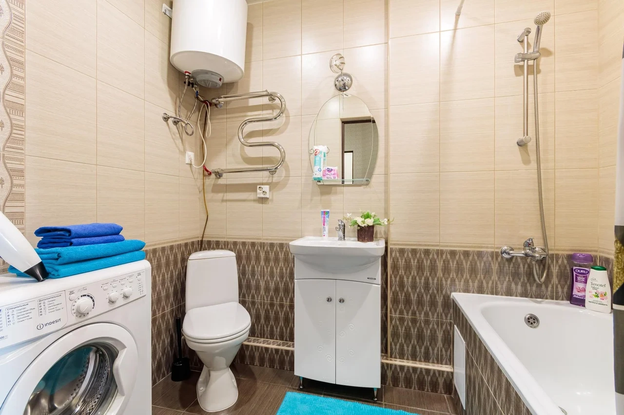 Квартира оборудована совмещенным санузлом, для более комфортного отдыха и расслабления после трудного дня можно принять ванную , для Вас приготовлены все мыльные принадлежности, фен и тапочки. Стиральная машина в санузле позволит быстро решить вопросы с грязным бельем, а сушилка и утюг помогут ваши вещи привести в идеальное состояние. Удобное расположение гардеробной позволяет быстро и аккуратно разместить Ваши вещи.
