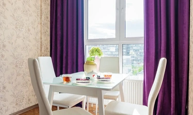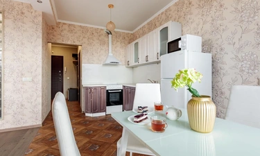 Для Вашего комфортного пребывания в квартире есть все необходимое - кухня оснащена техникой, эл.плита, микроволновая печь, чайник, для приготовления и приема пищи есть необходимая посуда, столовая посуда и чайный сервиз. Панорамный вид из окна кухни позволяет встречать утро с солнечными лучами за чашечкой кофе.