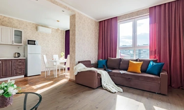 Если вы путешествуете с семьей или приезжаете в командировку в г. Краснодар, то мы готовы предложить Вам нашу уютную и комфортабельную Евро двухкомнатную квартиру категории «Апартаменты», площадью 50 кв.м. в современном жилом комплексе ЖК "Большой", в исторической, центральной части города.
