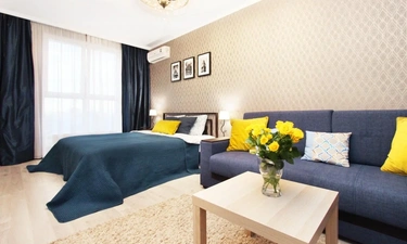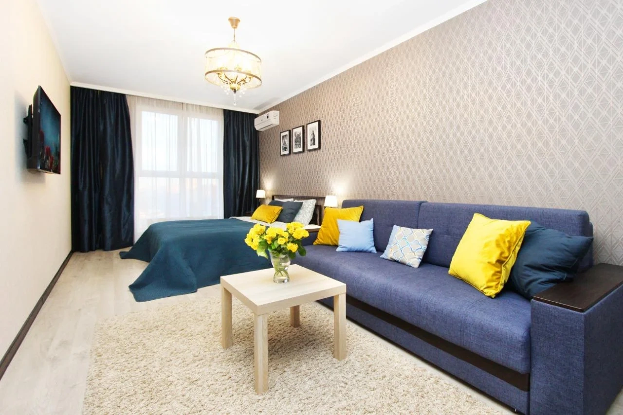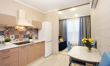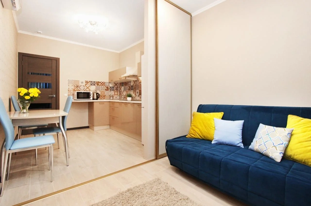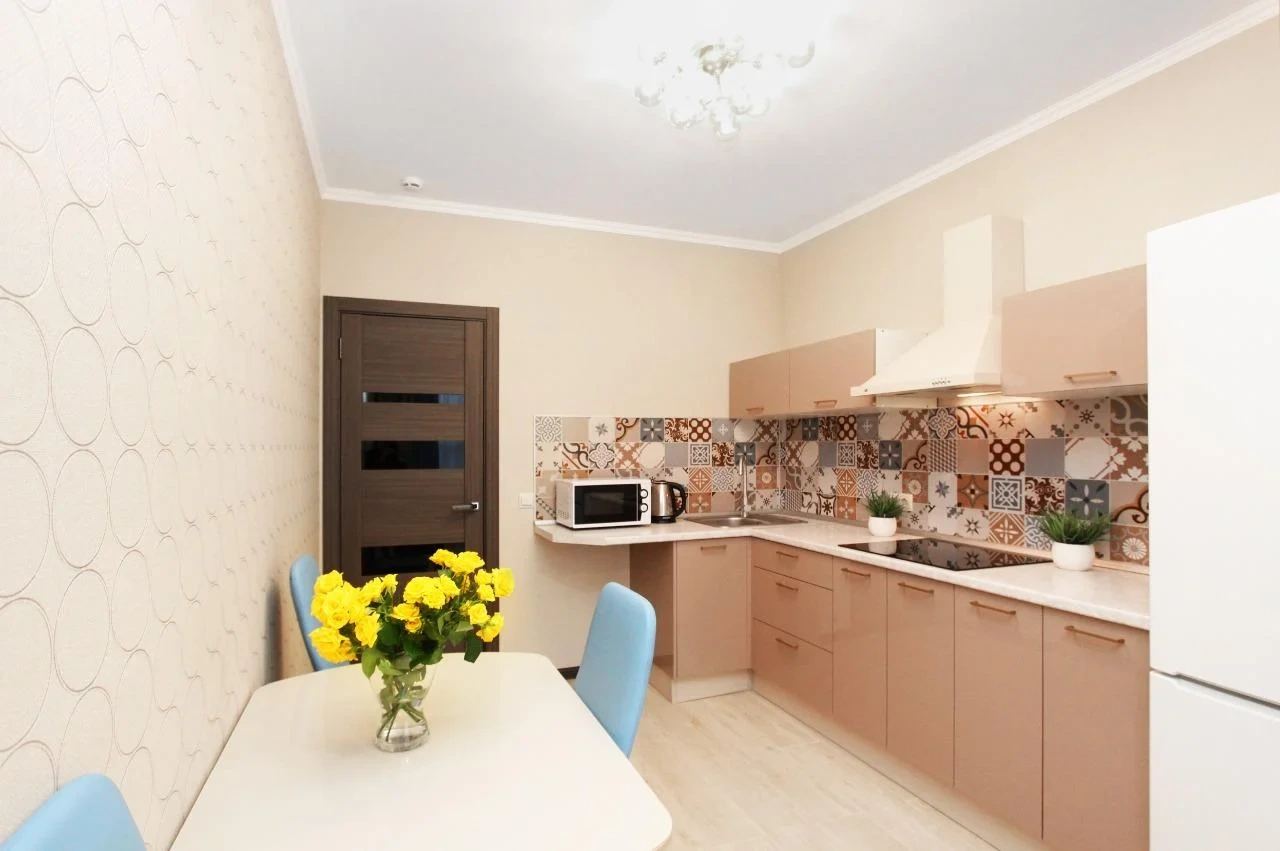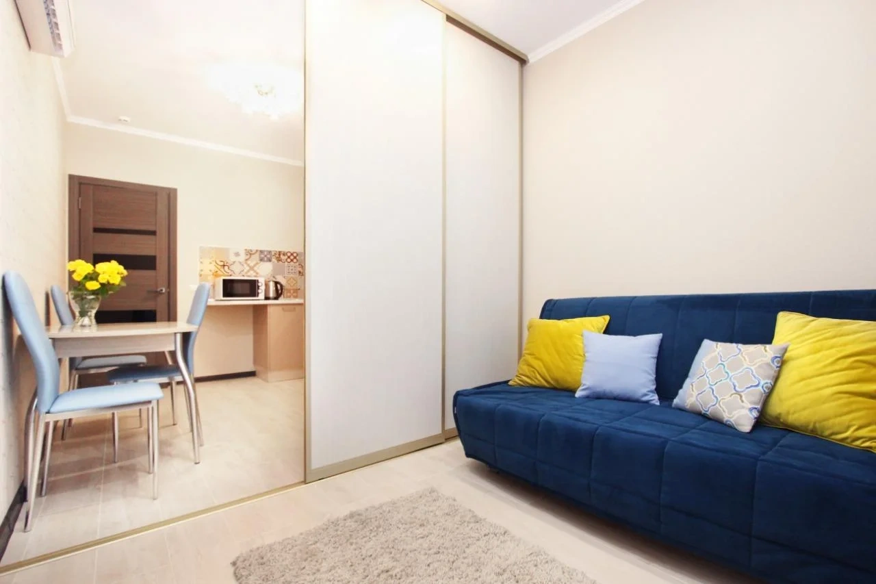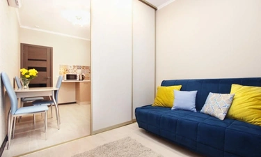 Есть все для комфортного проживания. Комната: диван, телевизор, шкаф, журнальный столик. Кухня: обеденный стол, стулья, кухонный гарнитур, электроплита, холодильник, микроволновая печь, электрочайник, посуда и кухонные принадлежности. Санузел: ванная, стиральная машина. Интернет: беспроводной Wi-Fi , кабельное телевидение.