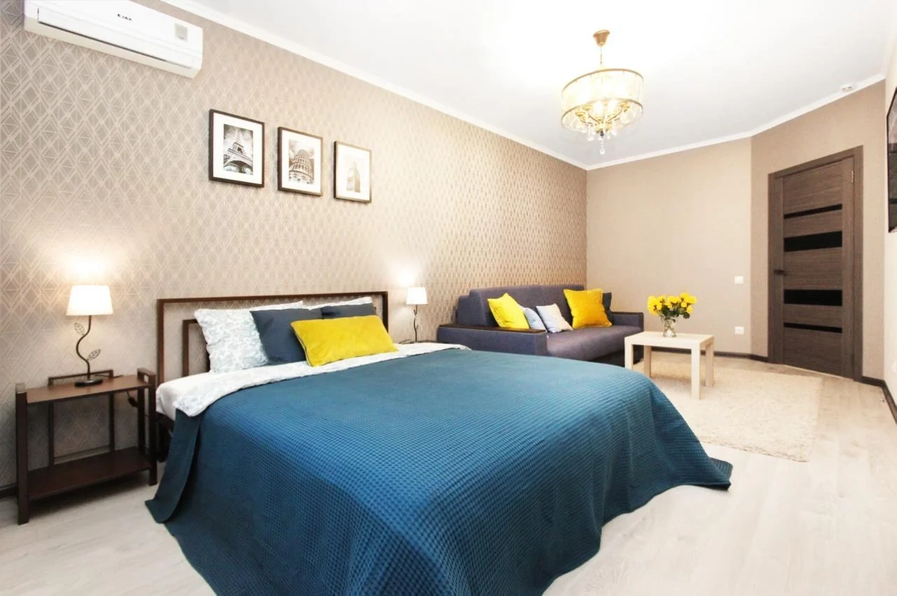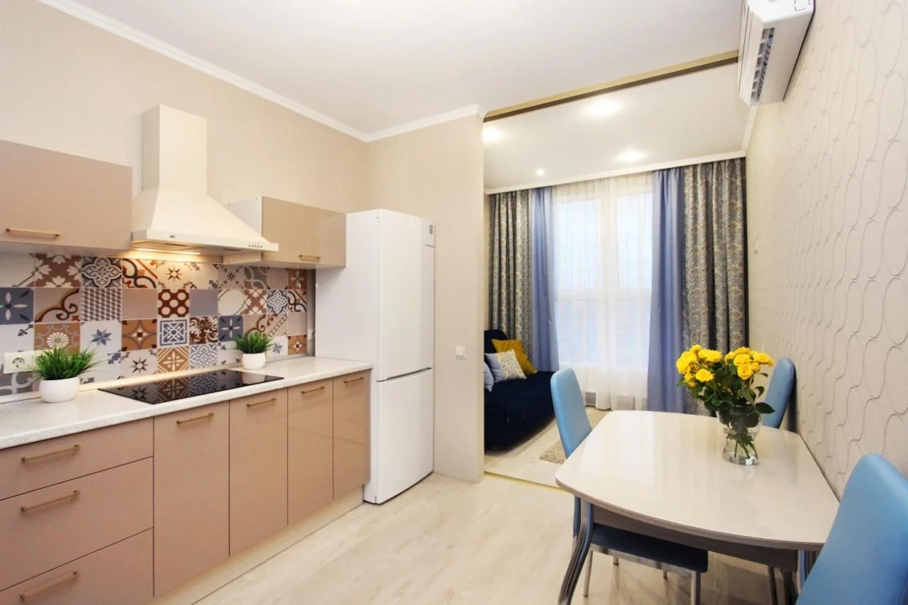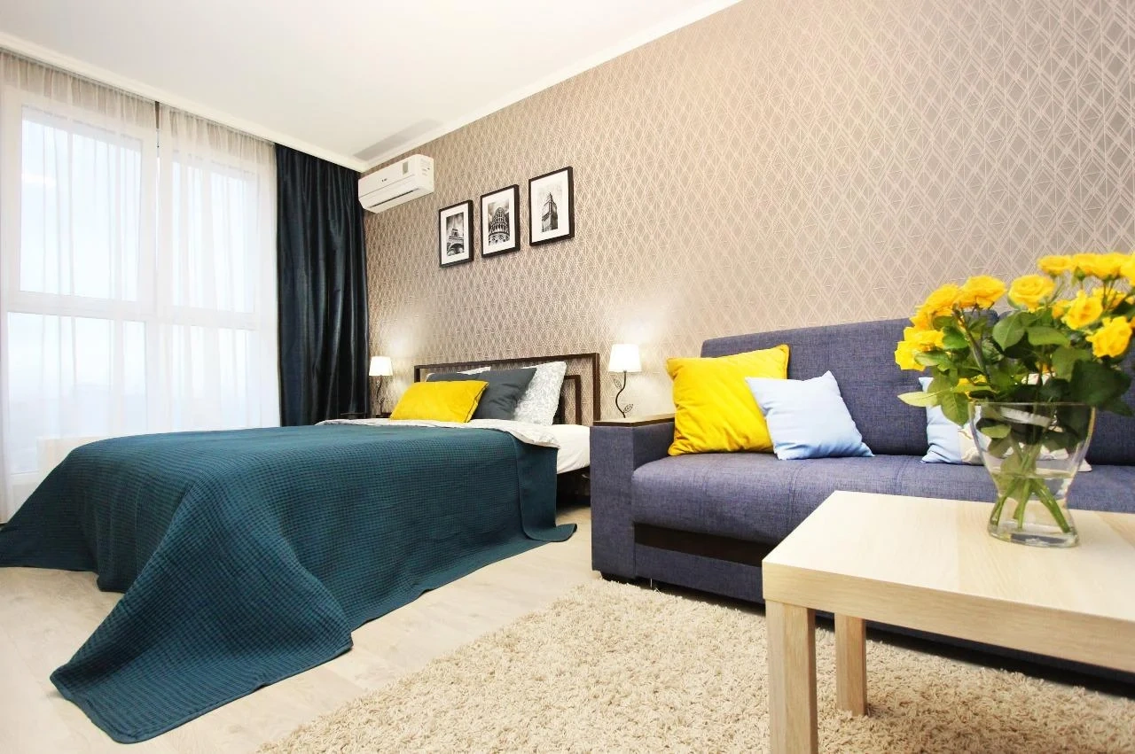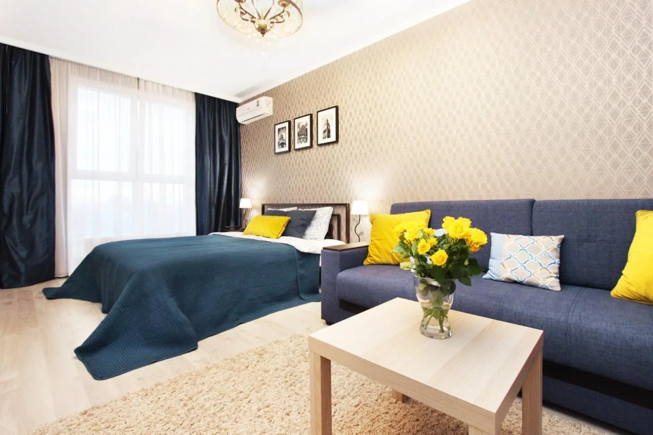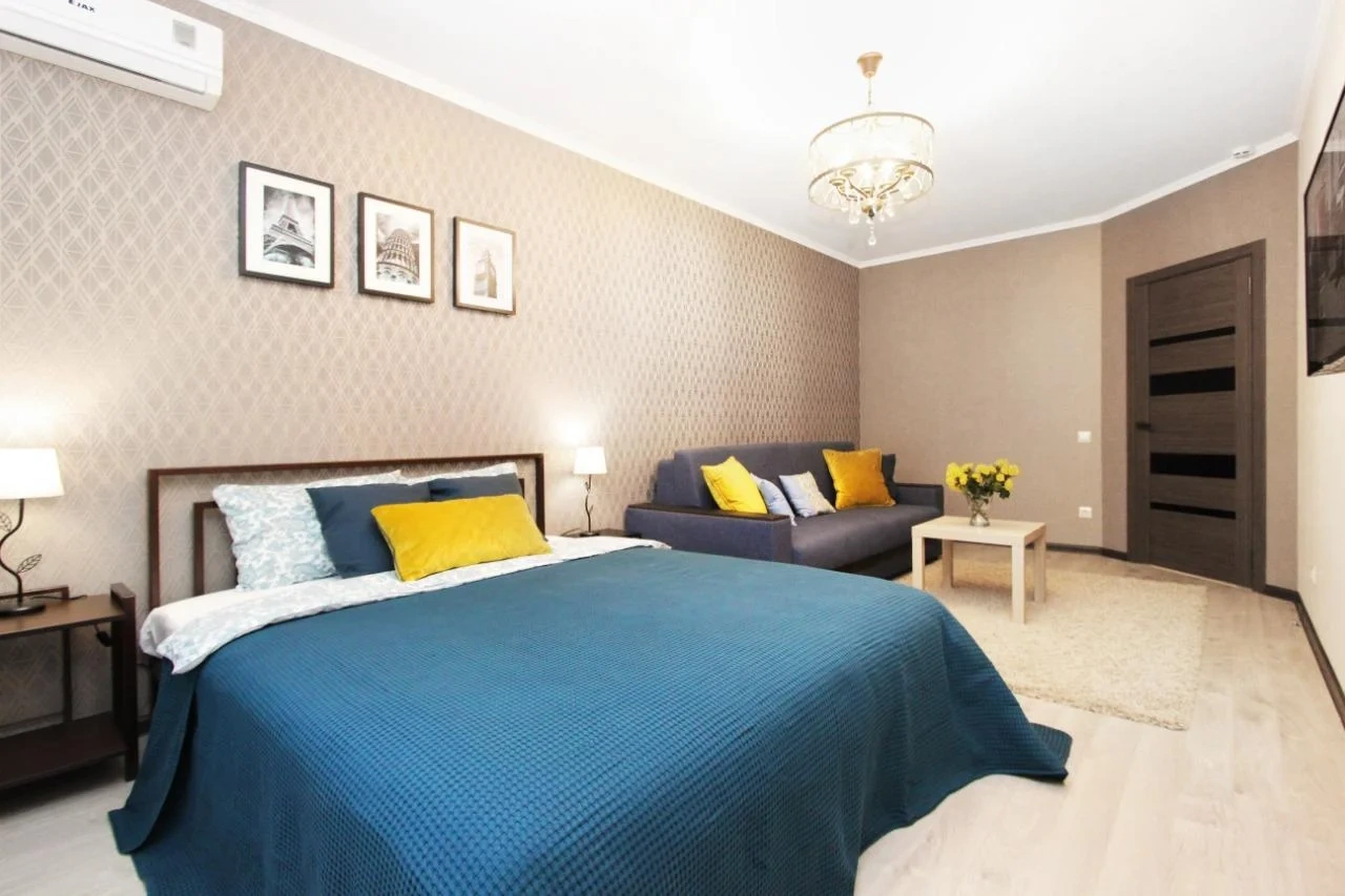 Есть все для комфортного проживания. Комната: диван, телевизор, шкаф, журнальный столик. Кухня: обеденный стол, стулья, кухонный гарнитур, электроплита, холодильник, микроволновая печь, электрочайник, посуда и кухонные принадлежности. Санузел: ванная, стиральная машина. Интернет: беспроводной Wi-Fi , кабельное телевидение.