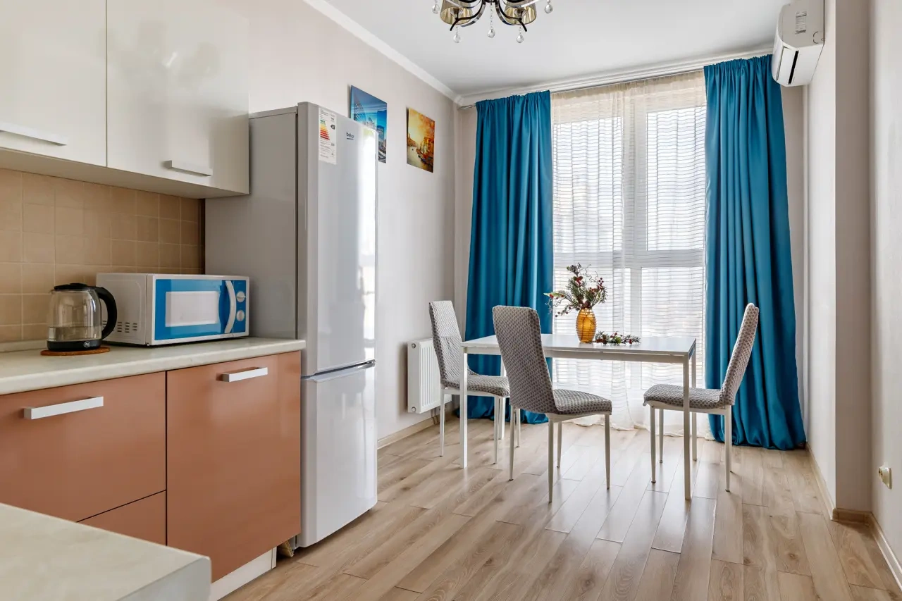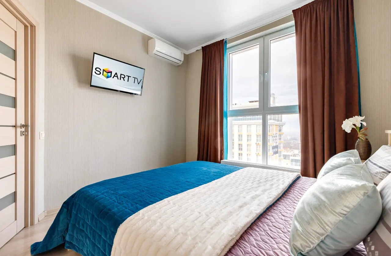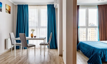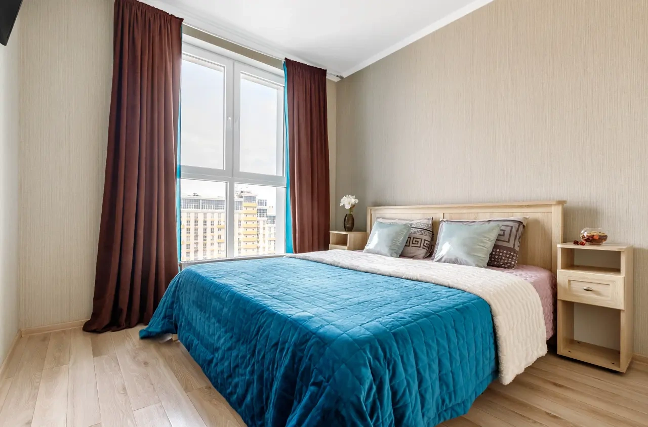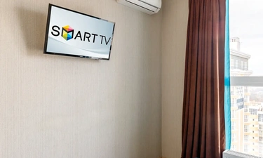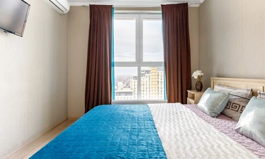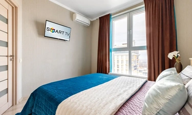 Уютная, красивая квартира с евро ремонтом в центре города. В квартире двуспальная кровать, угловой диван, гардеробная комната для одежды, обеденный стол, жк телевизор в каждой комнате, wi-fi, на кухне встроенный кухонный гарнитур, свч- печь, холодильник, стиральная машина.