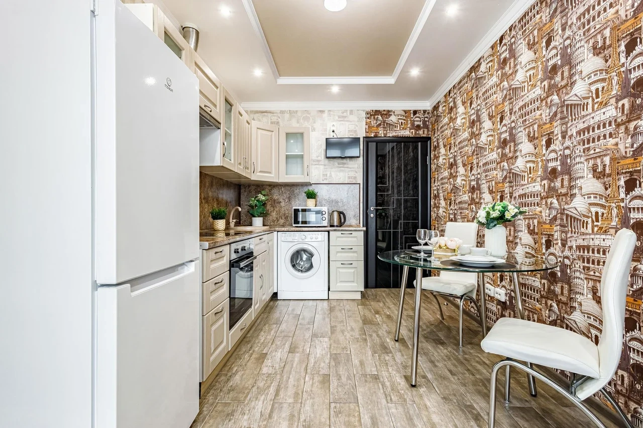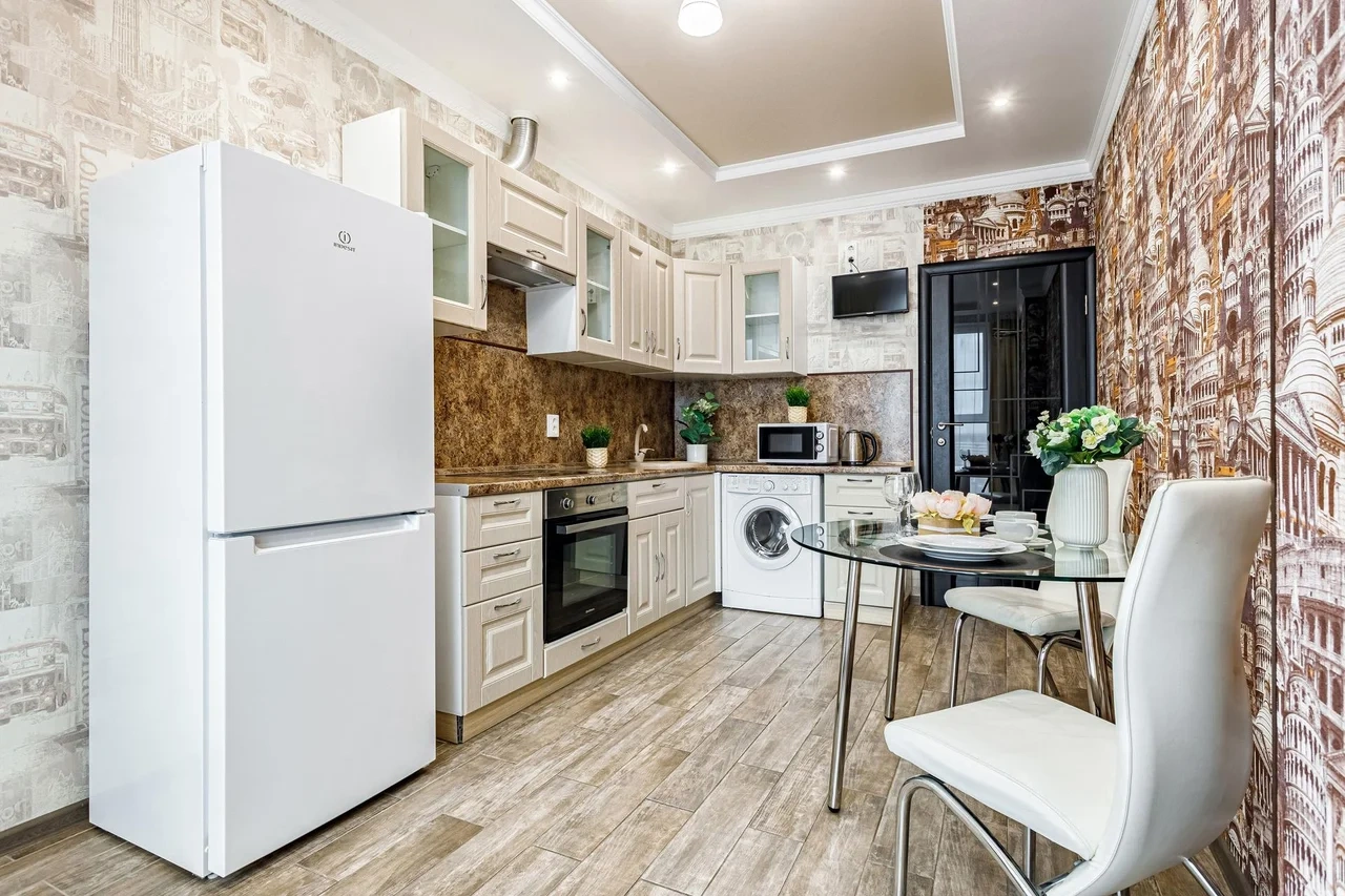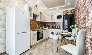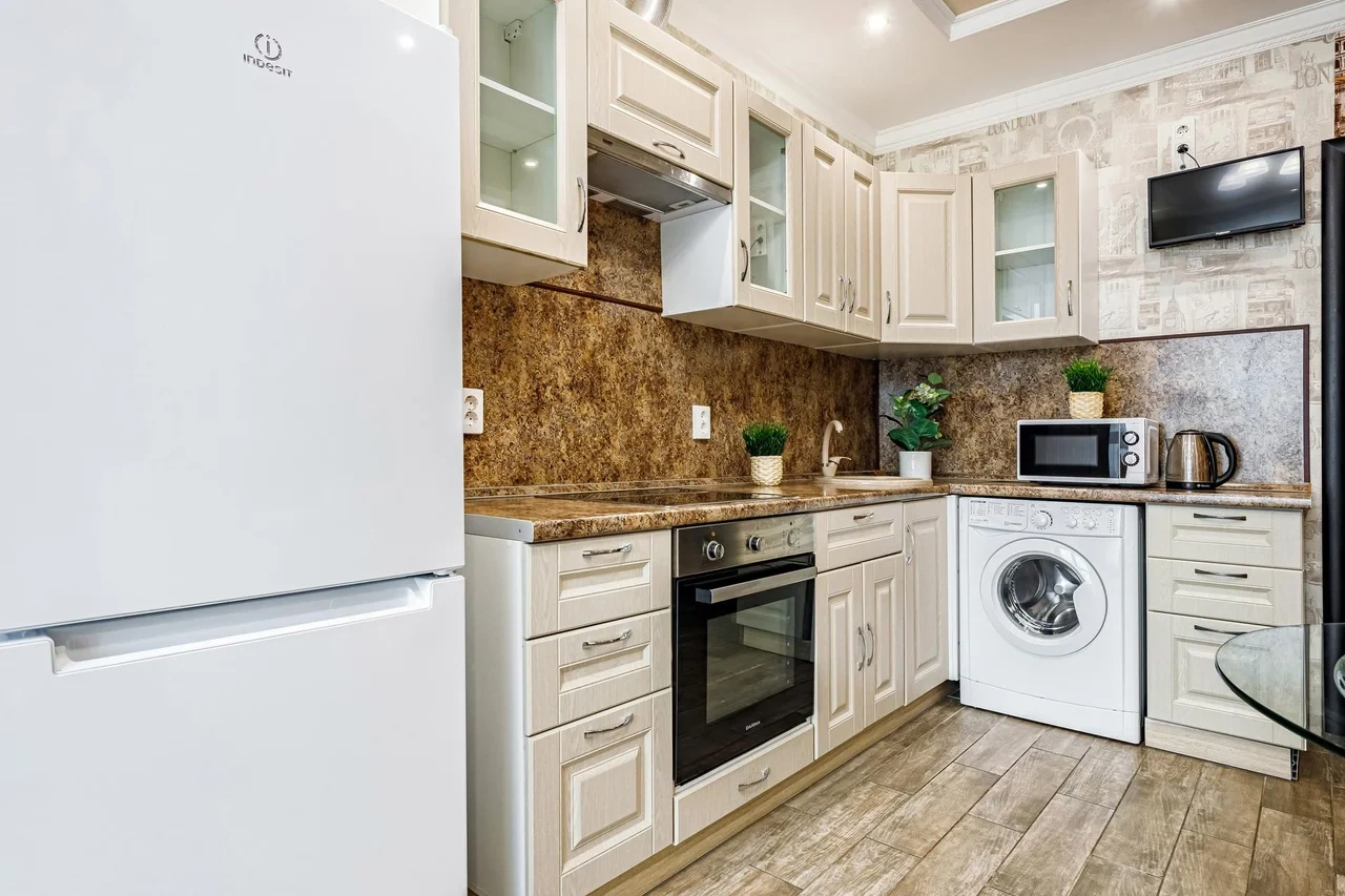Есть все для комфортного проживания. Комната: диван, телевизор, шкаф, журнальный столик. Кухня: обеденный стол, стулья, кухонный гарнитур, электроплита, холодильник, микроволновая печь, электрочайник, посуда и кухонные принадлежности. Санузел: ванная, стиральная машина. Интернет: беспроводной Wi-Fi , кабельное телевидение.