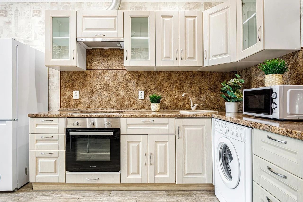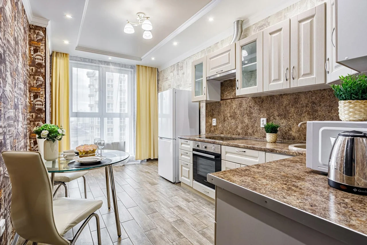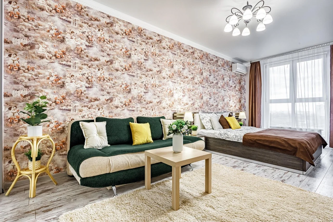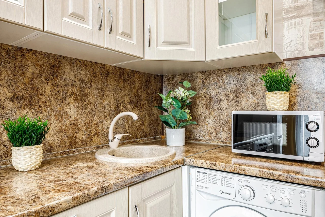 Есть все для комфортного проживания. Комната: диван, телевизор, шкаф, журнальный столик. Кухня: обеденный стол, стулья, кухонный гарнитур, электроплита, холодильник, микроволновая печь, электрочайник, посуда и кухонные принадлежности. Санузел: ванная, стиральная машина. Интернет: беспроводной Wi-Fi , кабельное телевидение.
