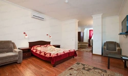 Номер с кондиционером, холодильником, телевизором с плоским экраном и собственной душевой комнатой комнатой, с удобной двуспальной кроватью. Бесплатные туалетно-косметические принадлежности.