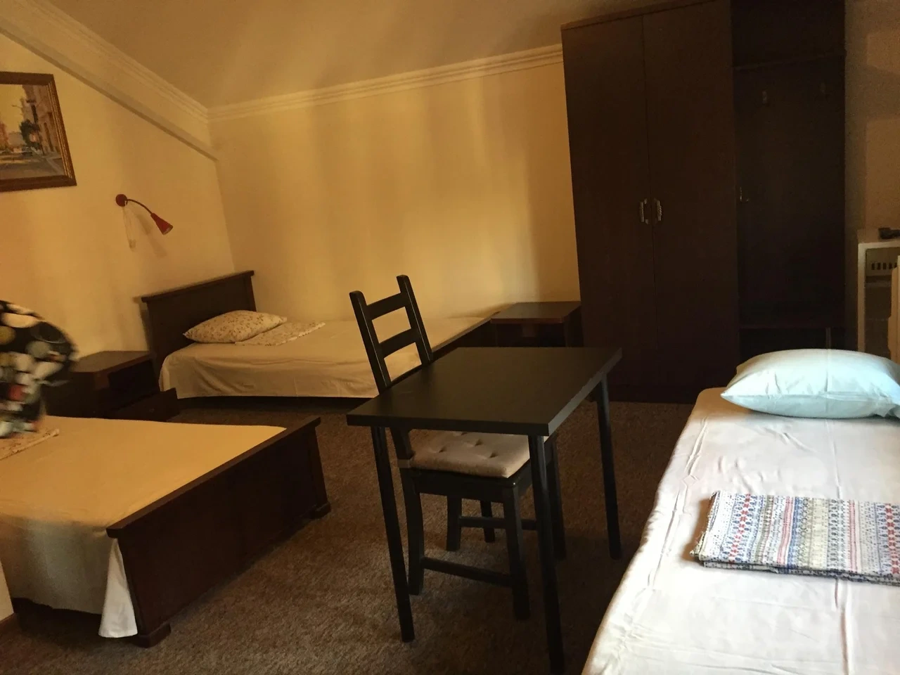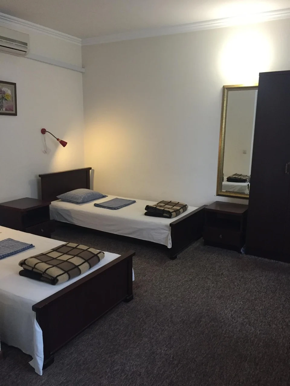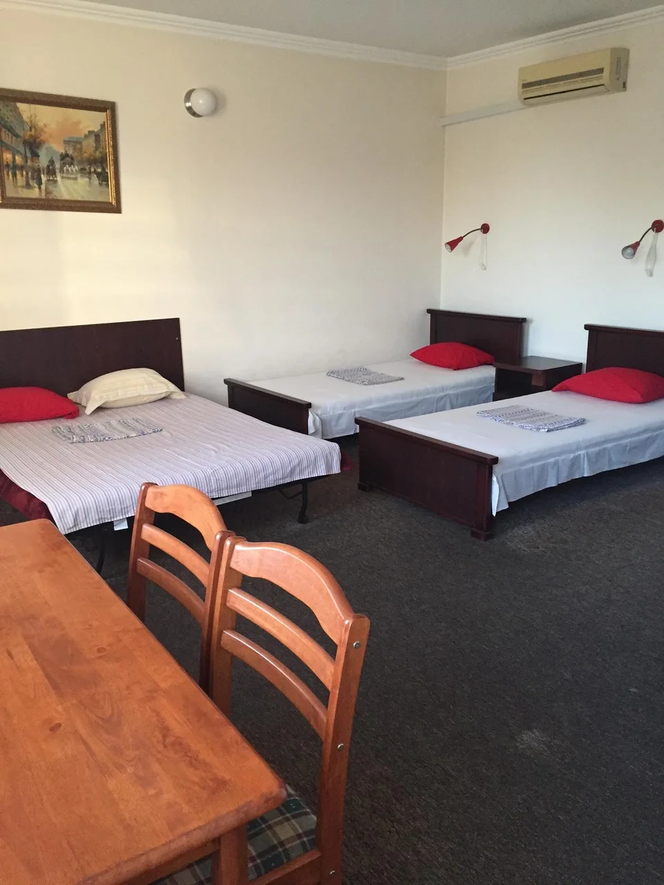 Номер с кондиционером, холодильником, телевизором с плоским экраном и собственной душевой комнатой комнатой, с тремя удобными кроватями. Бесплатные туалетно-косметические принадлежности.