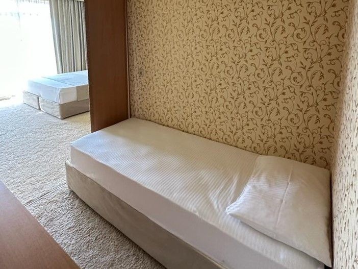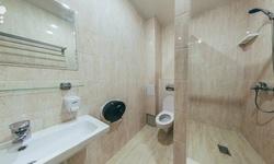 По отелю видно что на него подзабили давно, кровать Кинг size, это просто 2 кровати которые составлены вместе, с частой периодичностью разъезжаются образовывая дыру в середине, ванных наборов нет, не Геля не шампуня, даже тапок , то есть вы заселяетесь в абсолютно пустой номер, все остальное предлагают купить на ресепшене - наборы с тапками которые априори даже в самый дешевых отелях есть. Душ это отдельная история, крепление лейки на соплях висит, вода - включаешь горячую она с перебоями холодной идёт, моешься как контрастный душ. Шторы рваные, мебель уставшая. На фото лучше чем в живую. Вообщем отель тоже не из самых дешёвых, но ощущение что вас там не ждут.