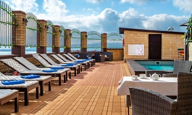 Открыт бассейн с подогревом под открытым небом, на крыше 9 этажа. Бассейн функционирует с мая по ноябрь, возле бассейна имеется 22 лежака, гриль бар.
