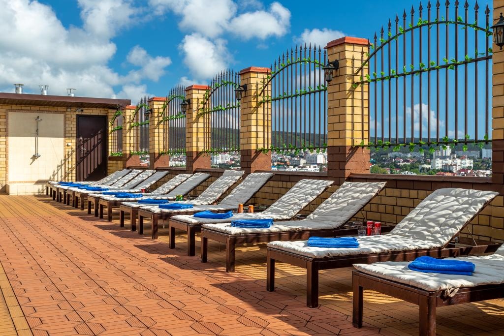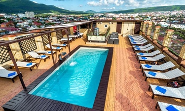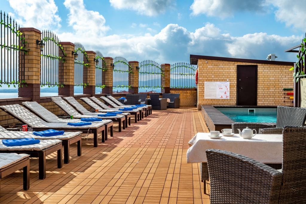 Номера отеля находятся на 6-7-8 этажах с открытыми для отдыха на свежем воздухе балконами, Отель рад предложить своим гостям отдых у бассейна под открытым небом на крыше 9-го этажа, услуги Гриль-Бара.