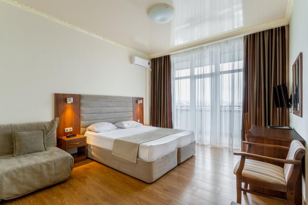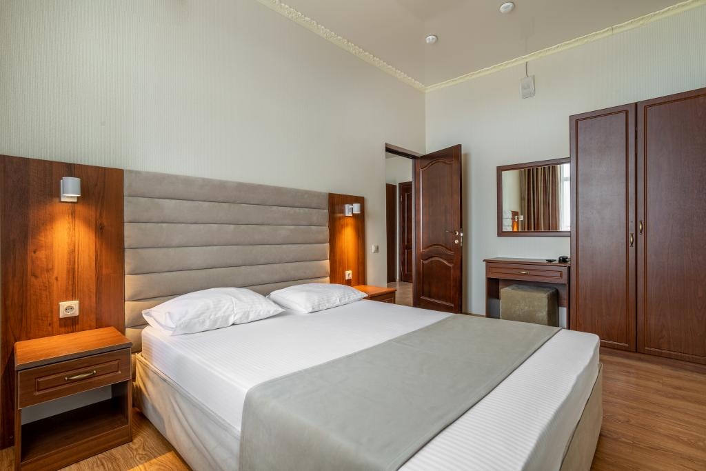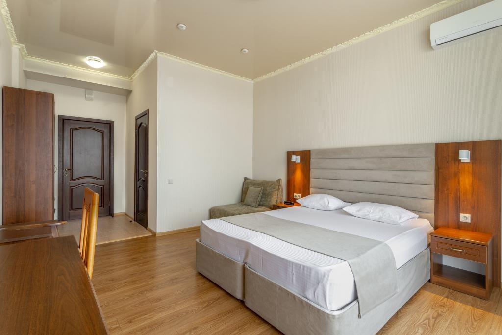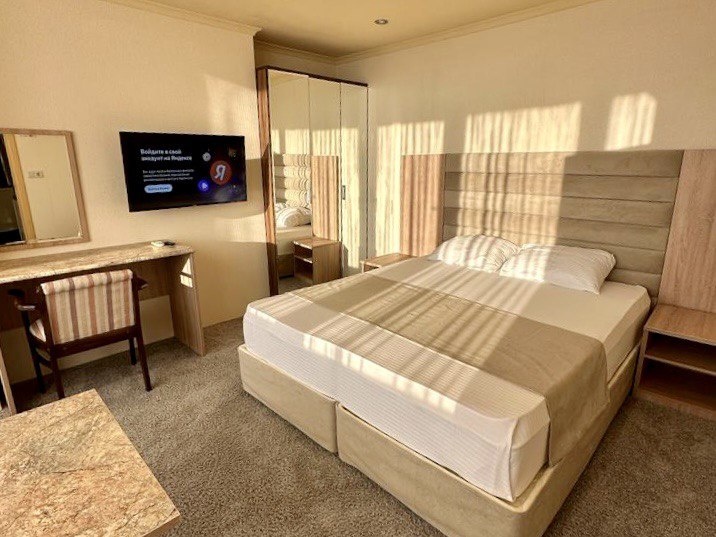 Комфортабельные номера класса "Люкс" и "Полулюкс", оснащены современной мебелью, сплит-системами, ЖК-телевизорами, холодильниками, сейфами, бесплатным WI-FI Интернетом, ванными комнатами. Отель оборудован скоростным лифтом.