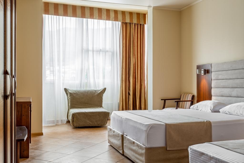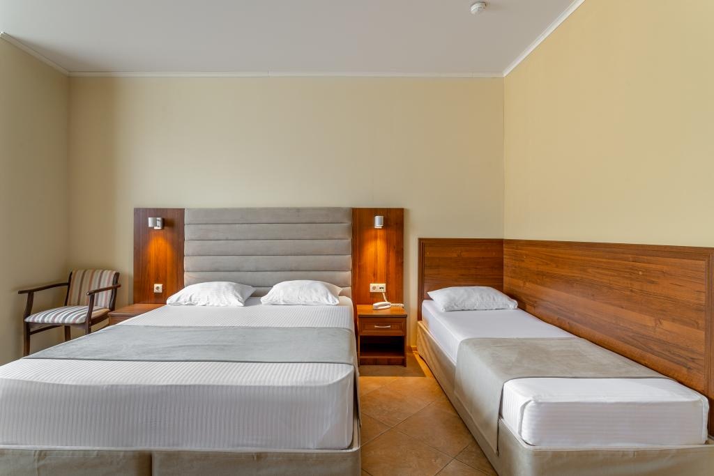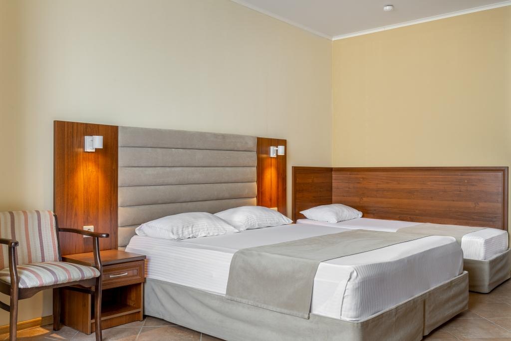 Номера уставшие, полотенца застиранные, в ванной комнате не было никаких банных принадлежностей, убирать номер начали когда мы приехали заселяться после 15.00, то есть с дороги отдохнуть не вышло