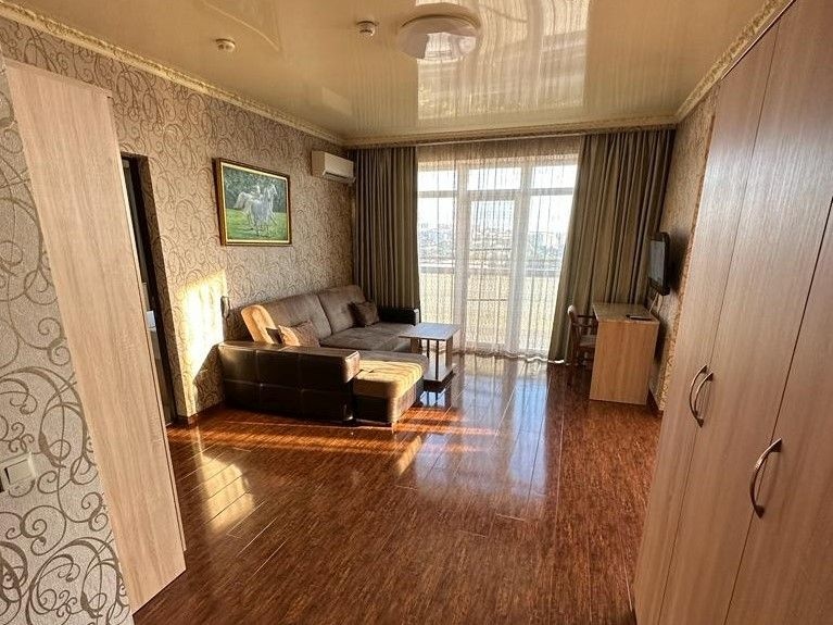 Наш отель расположен таким образом, что с каждого номера открывается удивительно красивый вид на город, на сверкающее в лучах солнца море, на возвышающиеся изгибы Мархотского хребта.