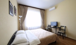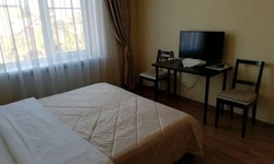 Двухместный номер оформлен в классическом стиле. Двухспальная кровать размера XXL, прикроватные тумбочки, стол, стулья, вешалка-гардероб для вещей, телевизор со спутниковыми каналами, кондиционер. В номере собственный совмещенный санузел с душевой кабиной.