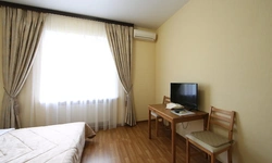 Двухместный номер оформлен в классическом стиле. К услугам гостей двухспальная кровать, прикроватные тумбочки, стол, стулья, вешалка-гардероб для вещей, кондиционер, телевизор с плоским экраном и спутниковыми каналами. В номере собственный санузел с душевой кабиной.
