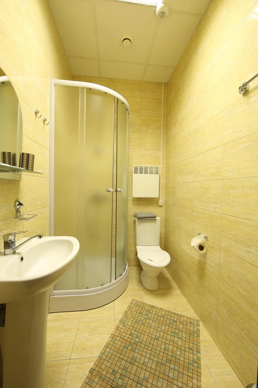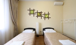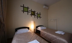 Двухместный номер в классическом стиле. В номере собственный совмещенный санузел с душевой кабиной. Номер оборудован двухспальной кроватью, прикроватными тумбочками, столом, стульями, вешалкой для вещей, светильником для чтения, кондиционером. В номере имеется ЖК-телевизор со спутниковыми каналами. Кухня общая, на 1-м этаже. Есть все необходимое:мебель, посуда, техника, принадлежности.