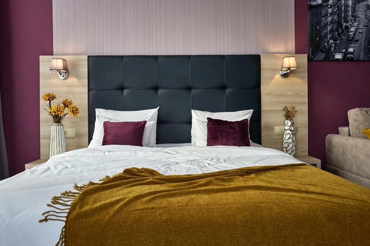 Окунитесь в атмосферу домашнего уюта в номерах категории Superior c одной большой (180*200) кроватью. В номерах представлены: кровати с удобными матрасами, высококачественный текстиль от бренда Togas, комфортные матрасы бренда Ascona, диван, рабочая зона, 40- дюймовый телевизор, индивидуальная система климат-контроля, мини-бар, набор для приготовления чая и кофе, телефон, Wi-Fi, сейф. Ванная комната оснащена душем, зеркалом с подсветкой, банными принадлежностями, а представленная итальянская косметика бренда Argan на основе натурального арганового масла, поможет расслабиться после продуктивного дня.