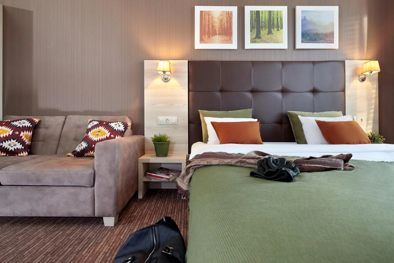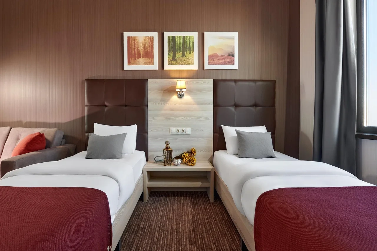 Окунитесь в атмосферу домашнего уюта в номерах категории Superior c двумя раздельными кроватями (90*200). В номерах представлены: кровати с удобными матрасами, высококачественный текстиль от бренда Togas, комфортные матрасы бренда Ascona, диван, рабочая зона, 40- дюймовый телевизор, индивидуальная система климат-контроля, мини-бар, набор для приготовления чая и кофе, телефон, Wi-Fi, сейф. Ванная комната оснащена душем, зеркалом с подсветкой, банными принадлежностями, а представленная итальянская косметика бренда Argan на основе натурального арганового масла, поможет расслабиться после продуктивного дня.