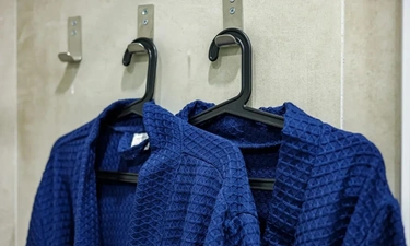 Постельное белье, полотенца, халаты,средства гигиены, утюг, фен.