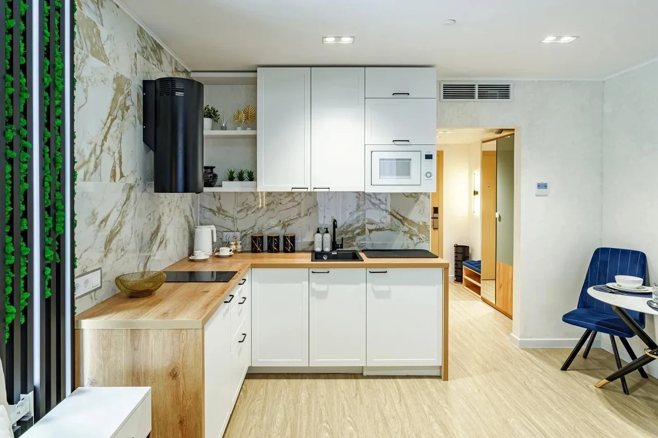 Familia Апартаменты оборудованы современной мебелью, необходимой техникой ( индукционная варочная панель, микроволновая печь, электрочайник, стиральная машина, холодильник).