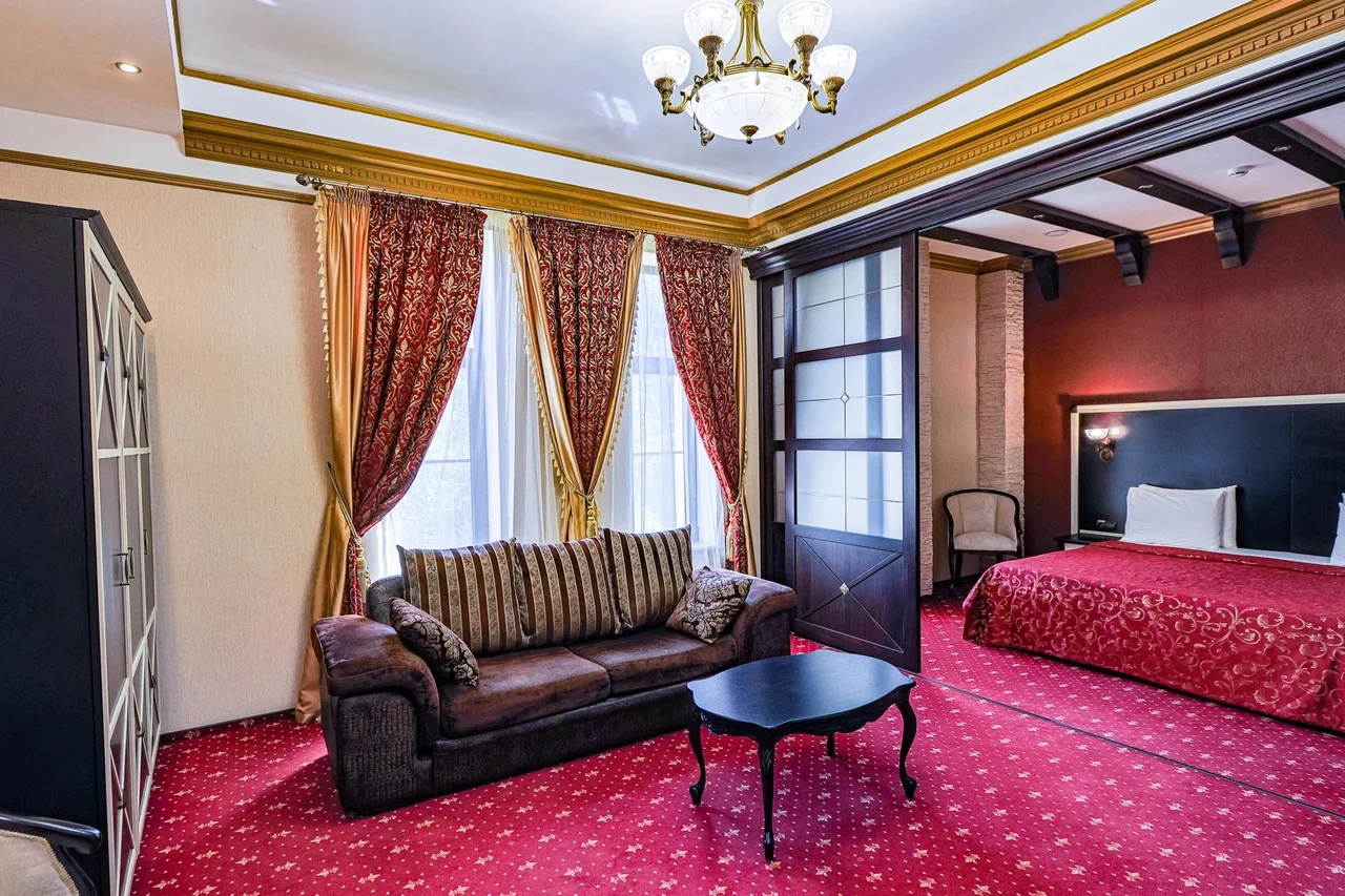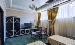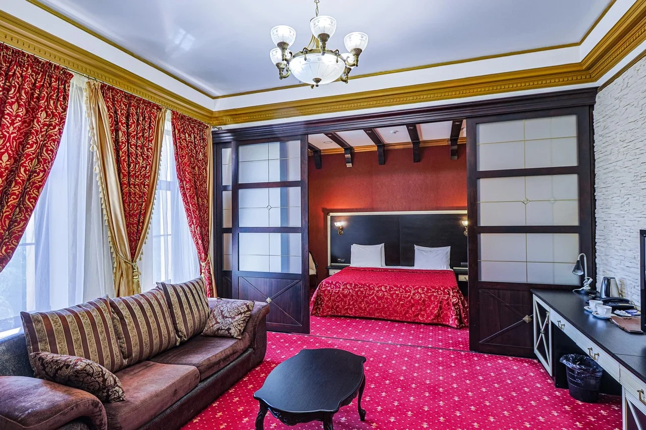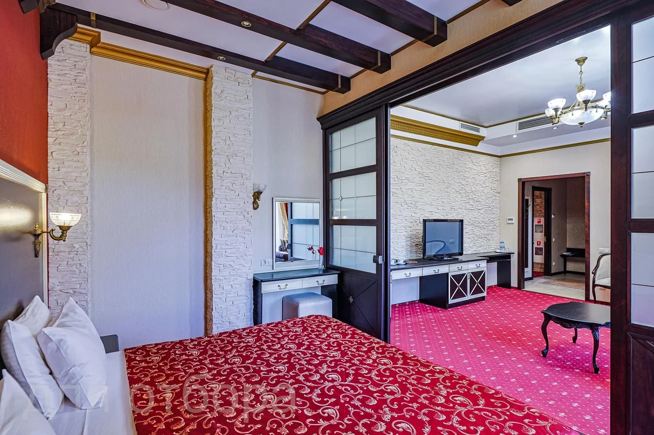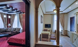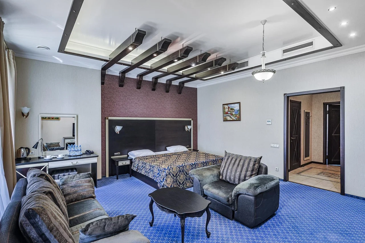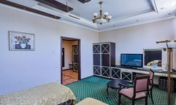 Номер люкс. Вежливый персонал, уютный номер, просторная ванная комната. Высокие потолки, раздвигающиеся двери на всю стену делят помещение на две комнаты, это очень удобно.