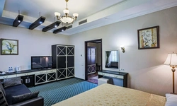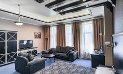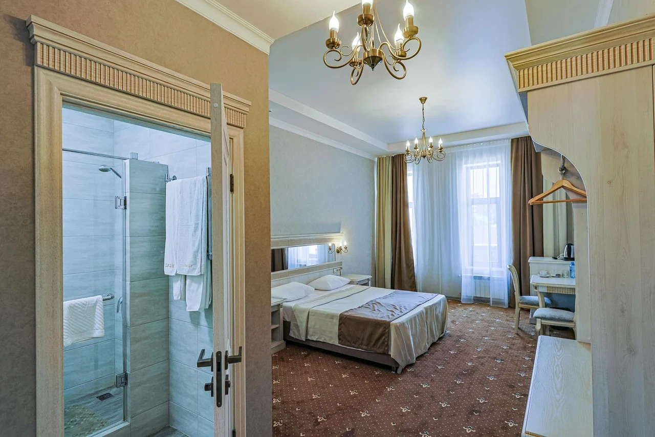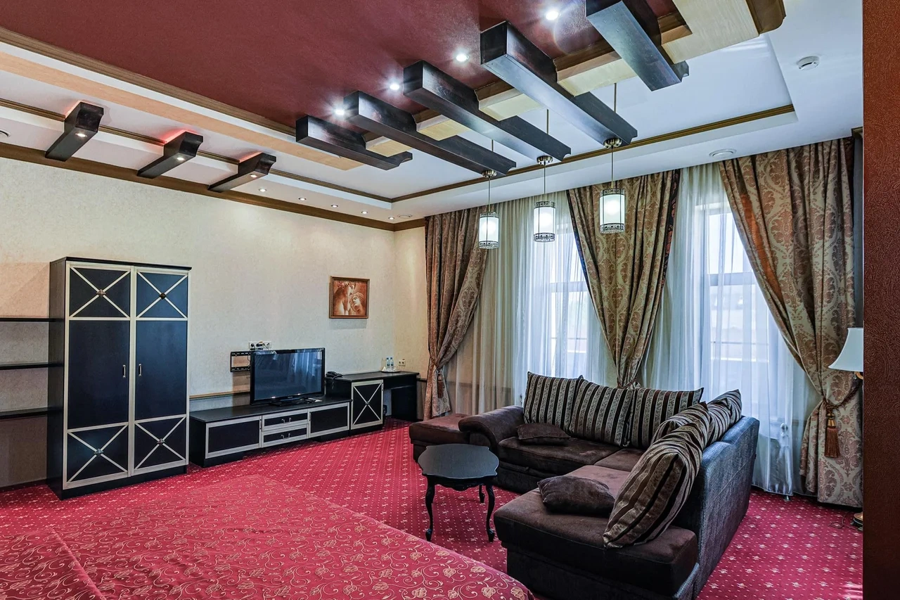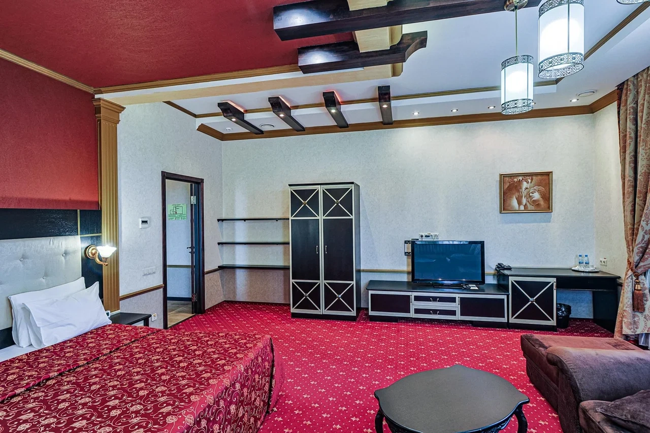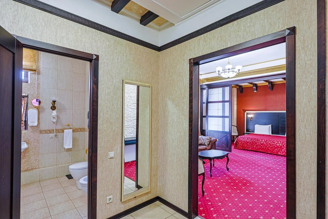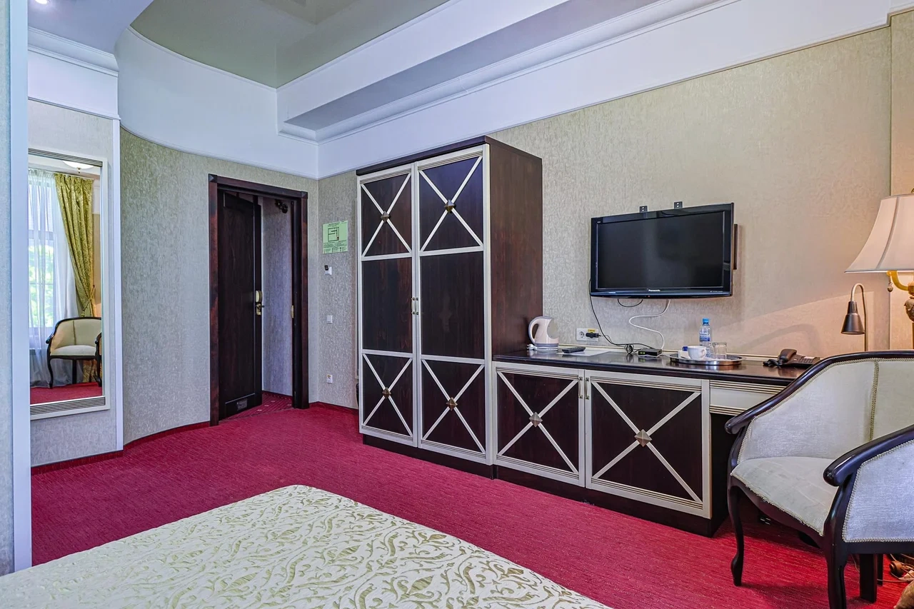 Номер люкс. Вежливый персонал, уютный номер, просторная ванная комната. Высокие потолки, раздвигающиеся двери на всю стену делят помещение на две комнаты, это очень удобно.