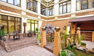 * Самое лучшее - это архитектура отеля, устройство номеров по прямоугольнику, когда в середине площадка с прудиком и столики для покушать. Приятно глазам на все это любоваться. Лестница идет вокруг лифта, мне такое нравится. Высокие потолки в номере, приятно просыпаться в таком месте. Большая ванная, большая прихожая в номере.