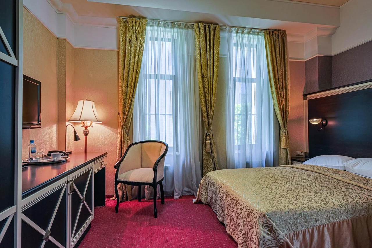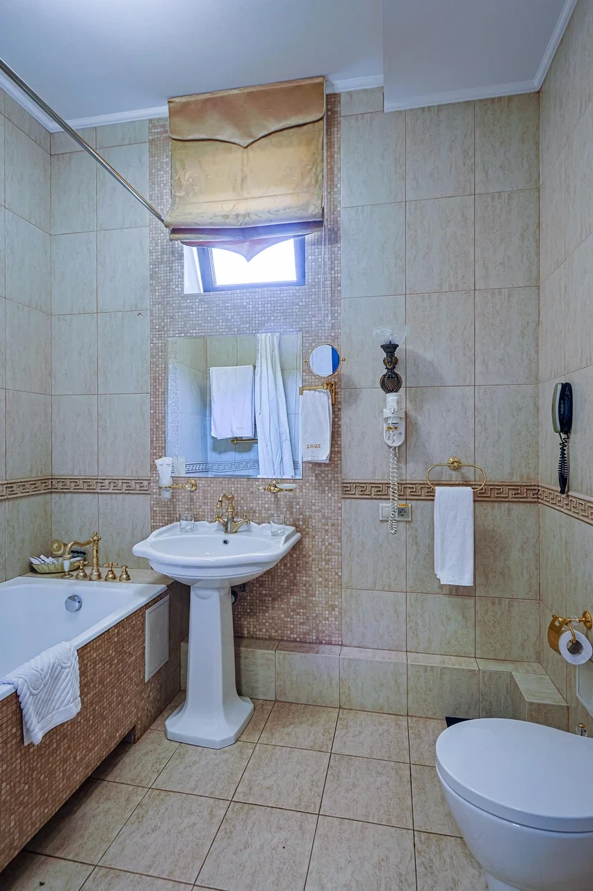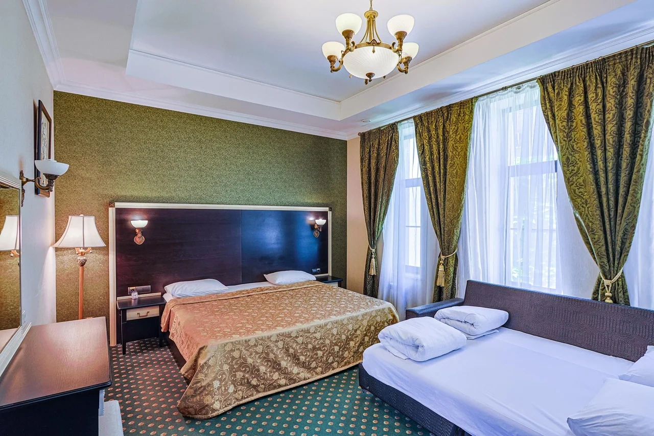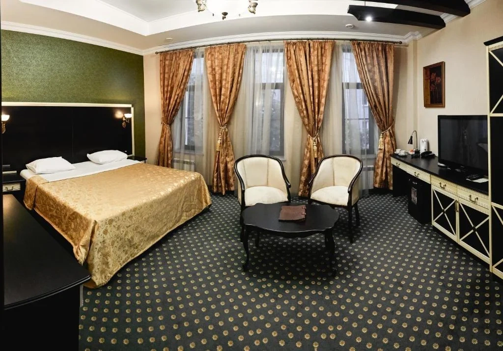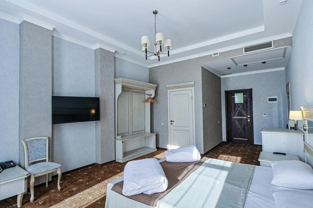 Пятен , полотенца соответствующие такому уровню отеля ,перечислять можно еще очень долго ! Итог : шум , грязь и т.д ! На утро мне было назначено серьезное обследование , а да самое главное ; одеяло не соответствует близко отелю 4 звезды , они как будто для гномов ! После того как , пожаловалась, пришла девушка , заменить одеяла , но при этом пододеяльников не оказалось нужного размера ! Все это растянулась на часы ! Утром 7 утра мне нужно было выезжать на обследование , где я провела на ногах весь день , абсолютно не выспавшись ! После обследования , приехал в гостиницу , попросила пригласить управляющую ! Ко мне вышла девушка , не помню как зовут , и после того как задав вопросы , почему в гостинице 4 звезды , все так ужасно ! После предложила либо поселить в номер , который соответствует 4 звездам , либо возместить мне ущерб , и я уеду в другую гостиницу! Отдать должное , нас переселили как они назвали люкс , ну он более ли менее хоть похож на номер , был ! Так как на следующий день мы выезжали в Сочи домой , решила , что останемся ! Что могу сказать , это просто позор , иметь официально 4 звезды , а соответствовать наверное 2 ! А да ,уборки тоже в этом отели нет -это видно лишнее .