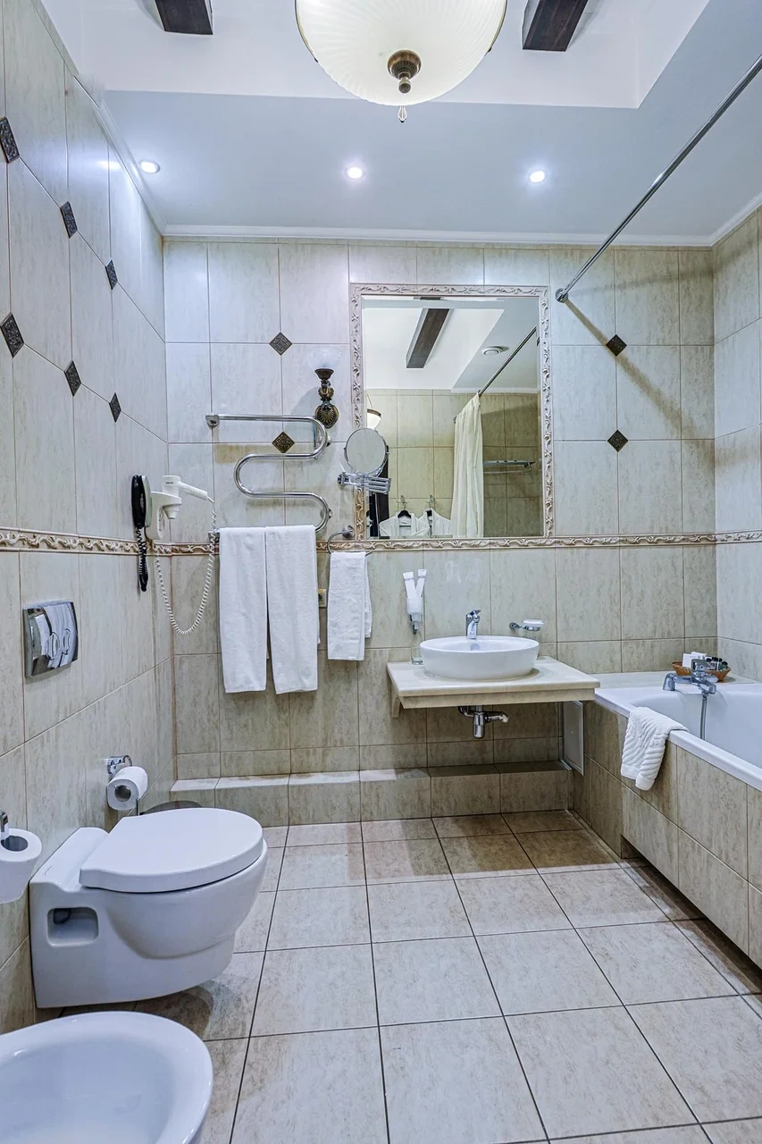 Номер, большой, чистый с большой ванной комнатой, есть биде, большая ванная. В общем почитал отзывы прежде чем ехать, думал будет хуже, оказалось отличный отель, закрытая подземная парковка, рядом много разных заведений, рестики, магазины…покушать можно прям при ресторане отеля, менеджер( к сожалению имя не спросил у него) угостил ( на дегустацию) вишневым напитком, спасибо. В общем смело езжайте, и по работе и на отдых, мы уж точно вернёмся, жаль что мало пожили.