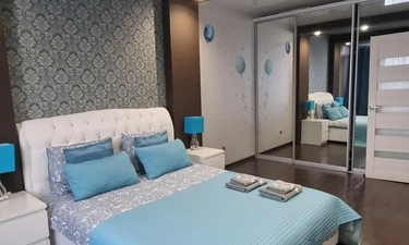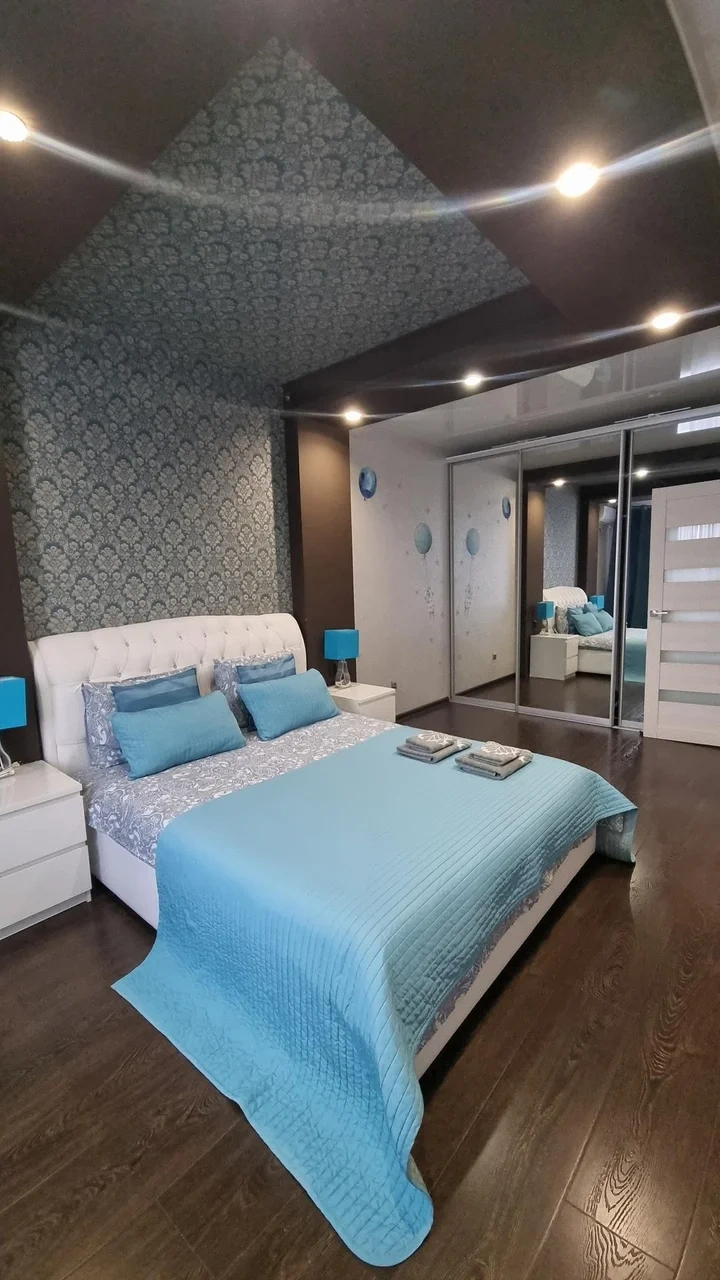 Квартира состоит из двух отдельных спальных зон, позволяющих разместить четырёх человек (двуспальная кровать и раскладной диван)