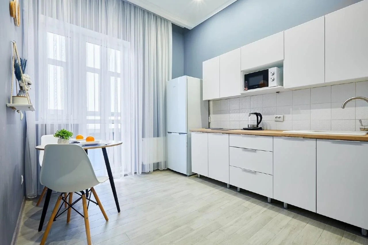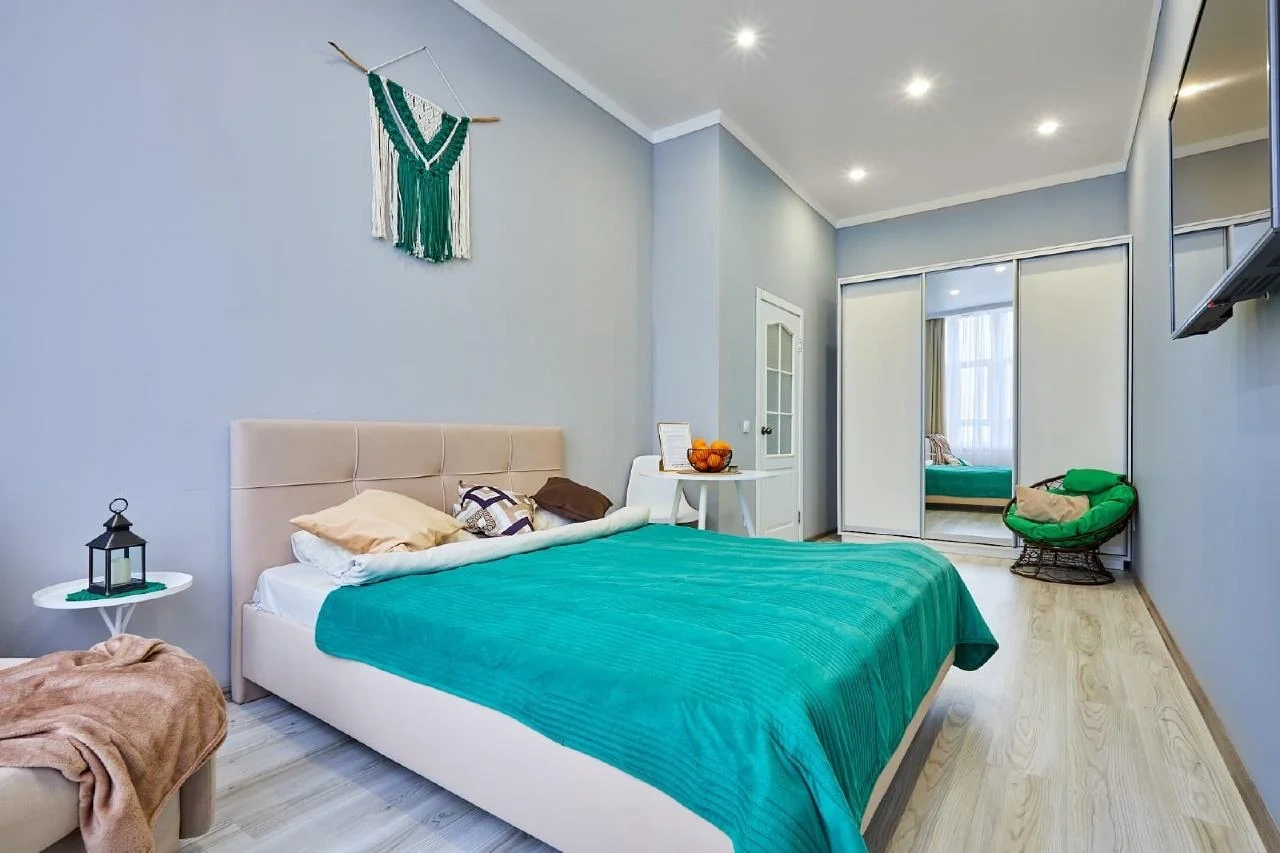 В квартире есть всё самое необходимое: Широкая кровать , раскладной диван, кабельное тв, быстрый интернет по wi-fi, утюг, чайник, фен, микроволновая печь, стиральная машина, чистое постельное белье, полотенца, гладилка, сушка для белья, кондиционер, средства личной гигиены , чай, кофе, сахар.