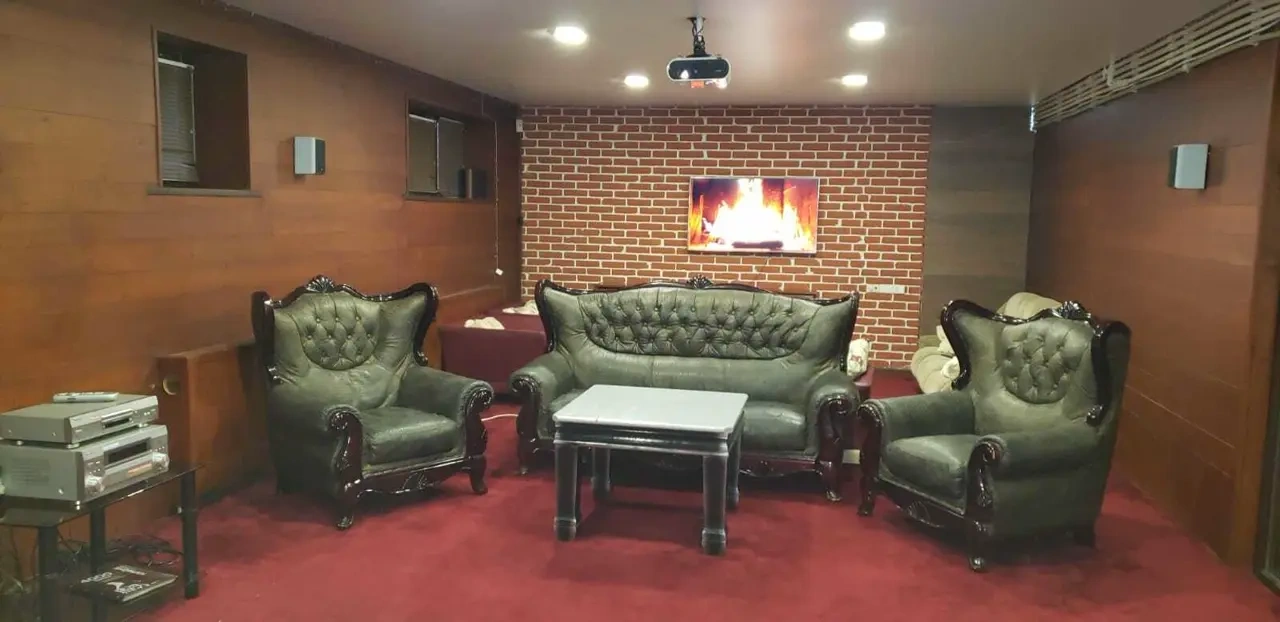 - Банкетный зал вместимостью до 25 человек, с панорамными окнами и выходом на террасу с бассейном.