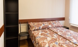 Жили одну ночь номер эконом,две кровати и тумбочка,вешалка и все.Постельное старое ,серого цвета от времени.Первый этаж ,окно закрывалось плохо, ,страшно было спать с открытым,вокруг кусты,и кто-то ходил ночью под окнами.Душ общий и туалет.Номер с предбанником,и там кто-то жил за шторкой, и приходилось проходить в свой номер мимо этой шторки,постоялец приходил позно и не шумел.Недостатки отеля ,не было чайника и стаканов,один стул в номере,персонал не очень приветливый.