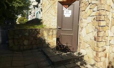 Зона так называемой рецепции, неопрятно. Какие-то полки с грязной обувью, тапками. Эта зона должна быть привлекательной, так как это первое, что видит гость при входе. И территория перед входом совсем не ухоженная. Место для курения не оборудовано, всё бросается на землю