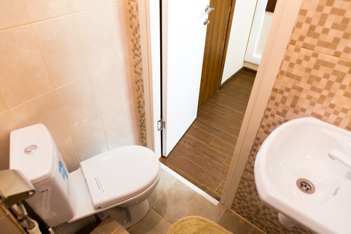 Метро в 10 мин ходьбы, рядом есть супермаркет Мираторг. В номере достаточно чисто, можно расположиться вчетвером. Санузел очень маленький, унитаз сразу рядом с дверью.