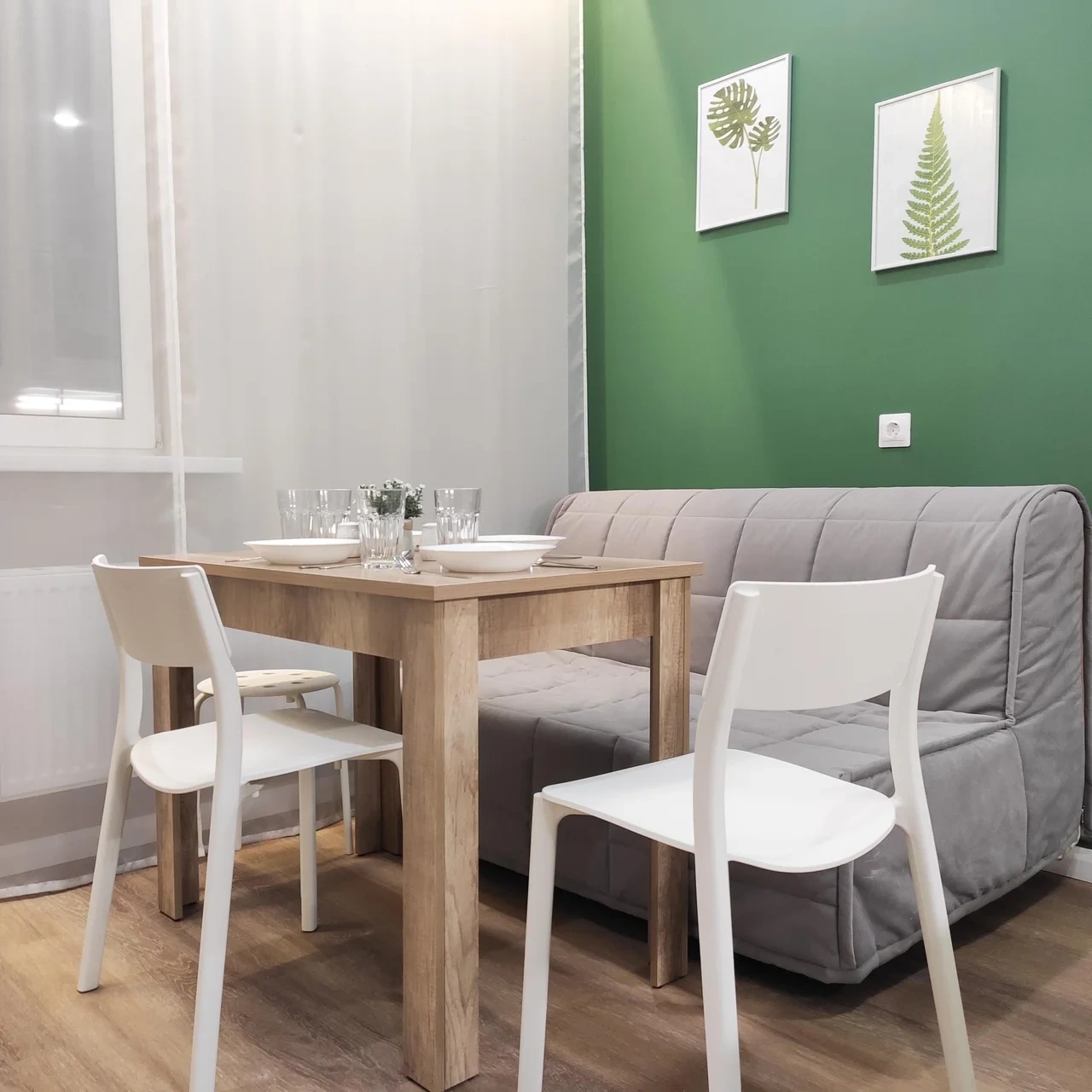 Квартира оборудована мебелью, техникой, посудой, мелкими бытовыми принадлежностями, текстилем. До 5 гостей.