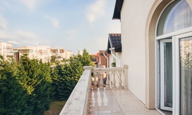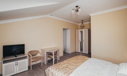 Очень симпатичный гостевой дом!!!Снимали самый большой номер наверху,двухместный Делюкс с балконом!Очень солидно!))Расположен на окраине Калининграде, но зато ближе к аэропорту!Это удобно!Завтраки просто супер!Кормили на убой!))Даже оливье и прочие салаты!Молодцы!