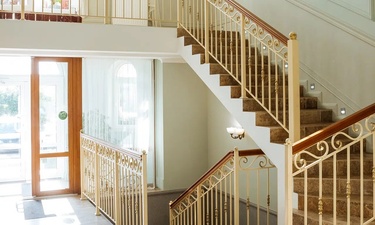 На красивых лестницах при подеме на 2 и 3 этажи есть очень незаметная маленькая супенька, которую легко пропустить даже молодому человеку. Она практически сливается с цветом плитки соседней ступени. Это опасно в плане падения для гостей любого возраста.