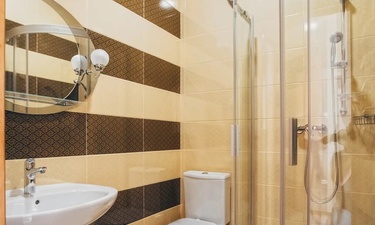 Номер на мансарде в душе не выпрямиться и по номеру ходишь согнувшись. Номер в подвале душ отдельно от номера в бане.