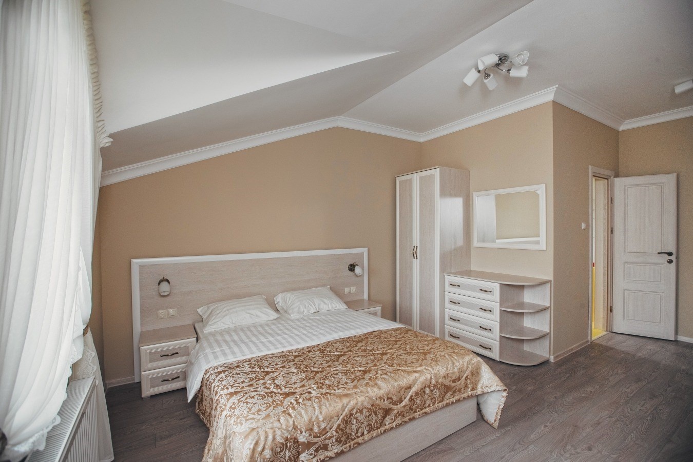 Всем гостям мы предлагаем высокий уровень обслуживания и комфортное размещение с завтраками, с бесплатным доступом в интернет, ежедневной уборкой, частной парковкой, трансфером до/от отеля, прокатом автомобилей, сауной с бассейном, собственным баром-рестораном, зоной барбекю , арендой парковки и прачечной.