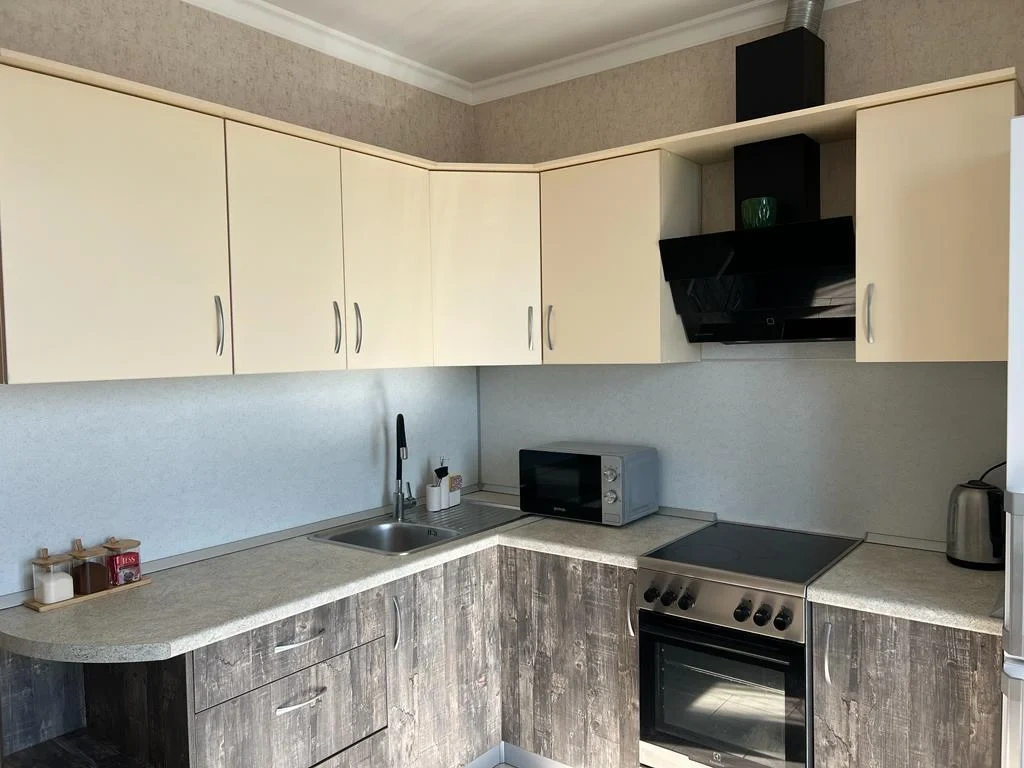Кондиционер (сплит-система), стиральная машина, холодильник, электрическая плита с духовым шкафом, микроволновка, чайник, фен, сушилка для белья