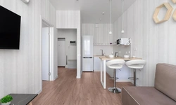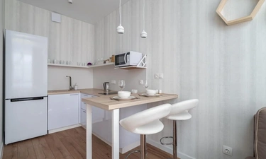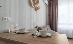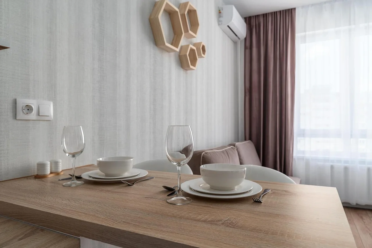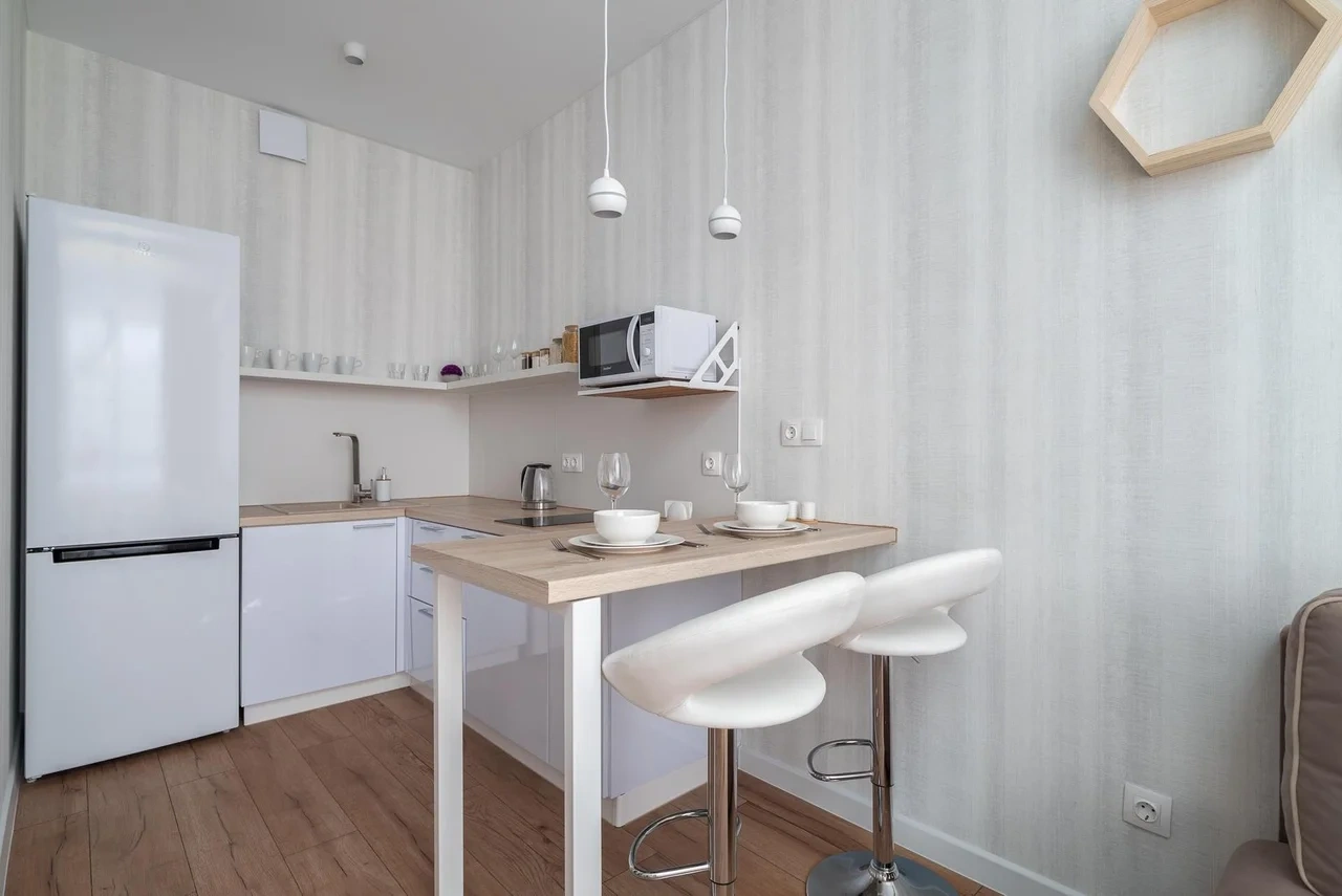 Полностью укомплектованная мебелью и посудой кухонная зона