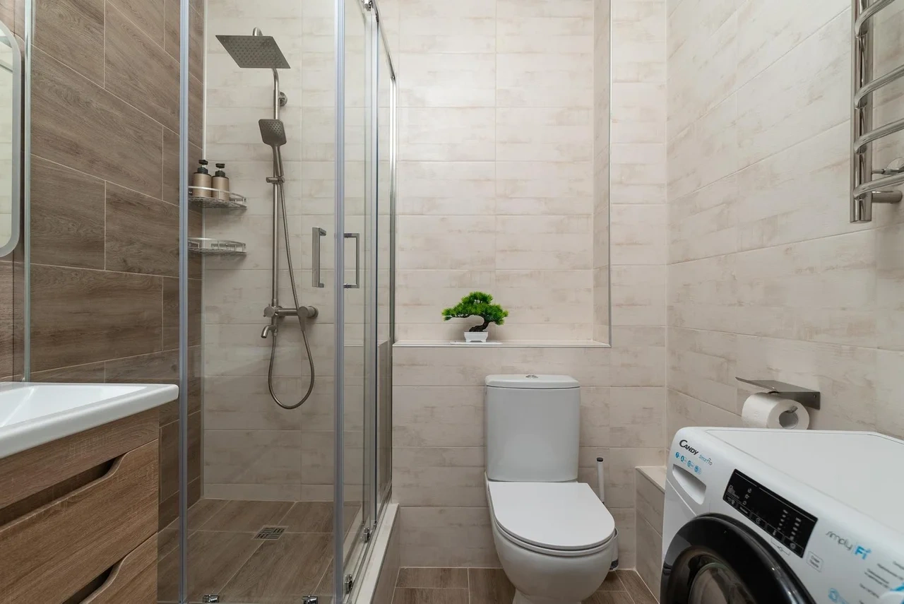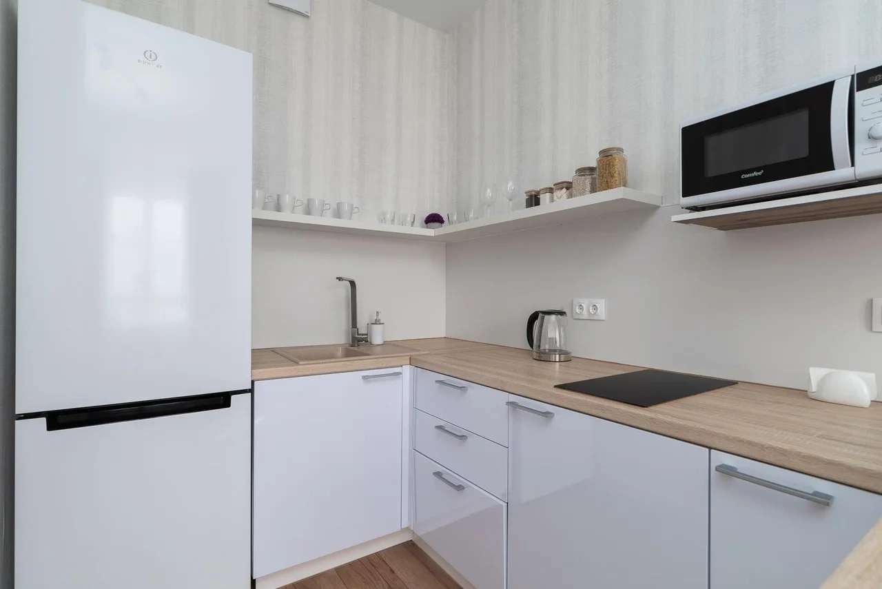 Кондиционер (сплит-система), стиральная машина, холодильник, варочная панель, микроволновка, чайник, фен, сушилка для белья.