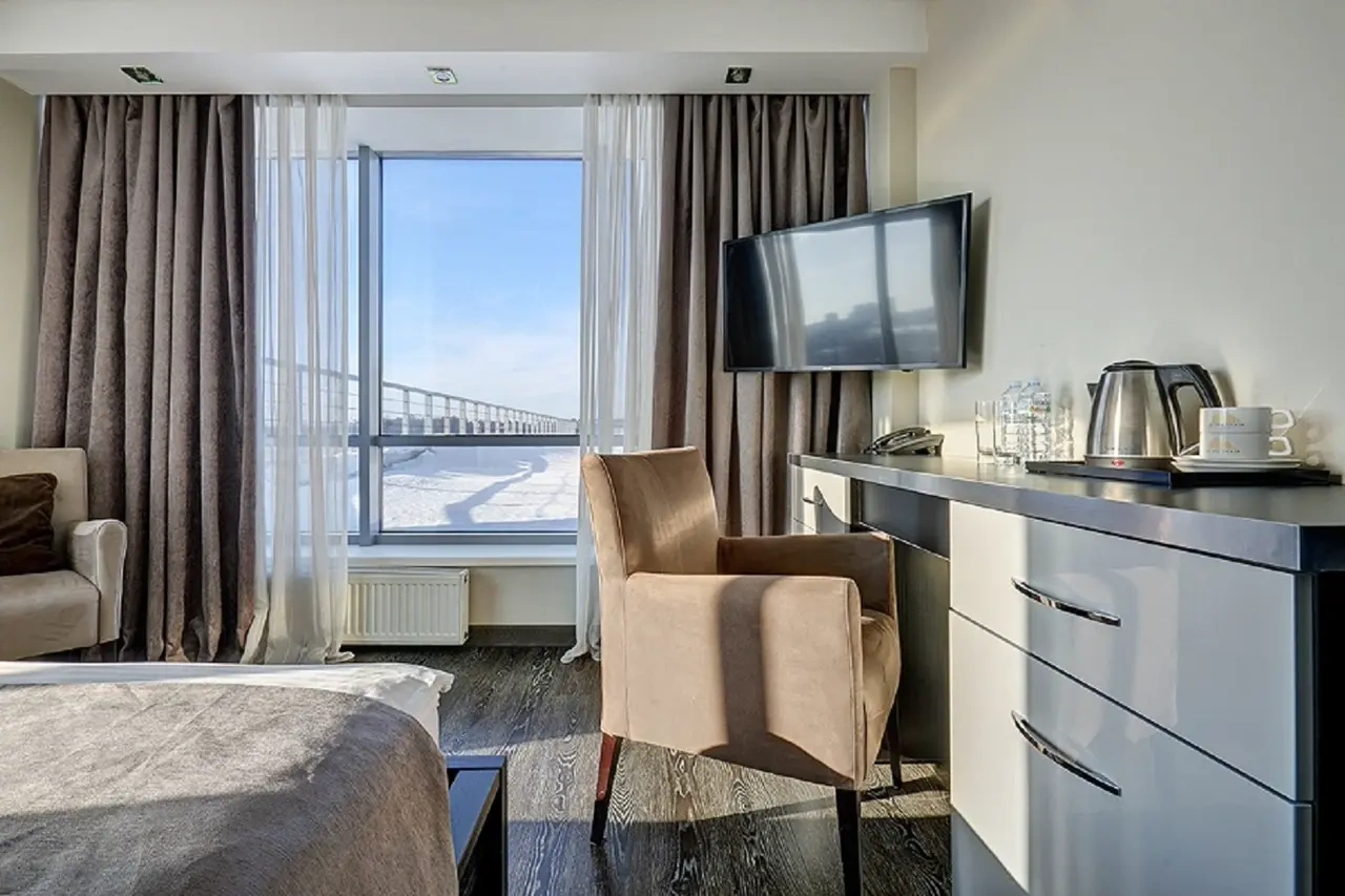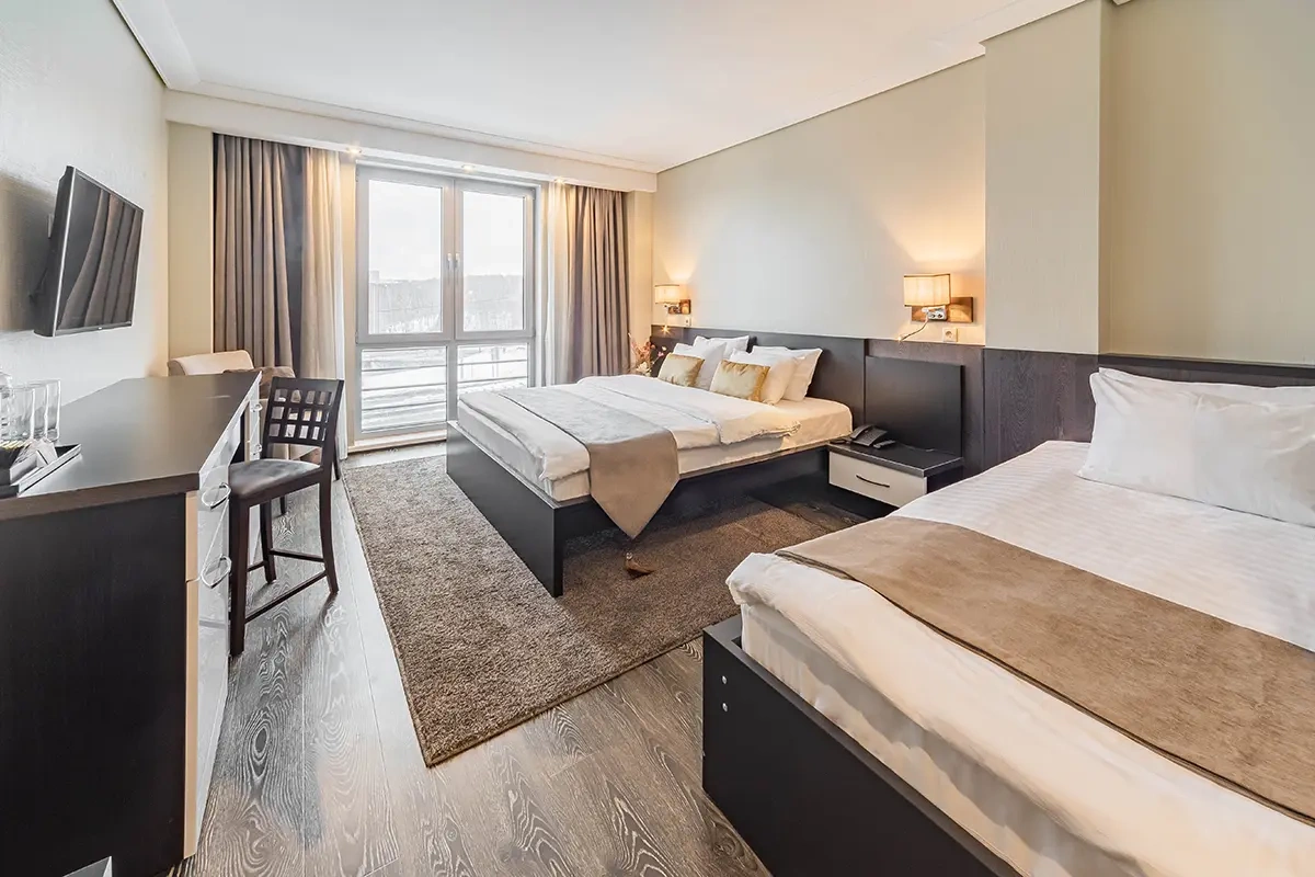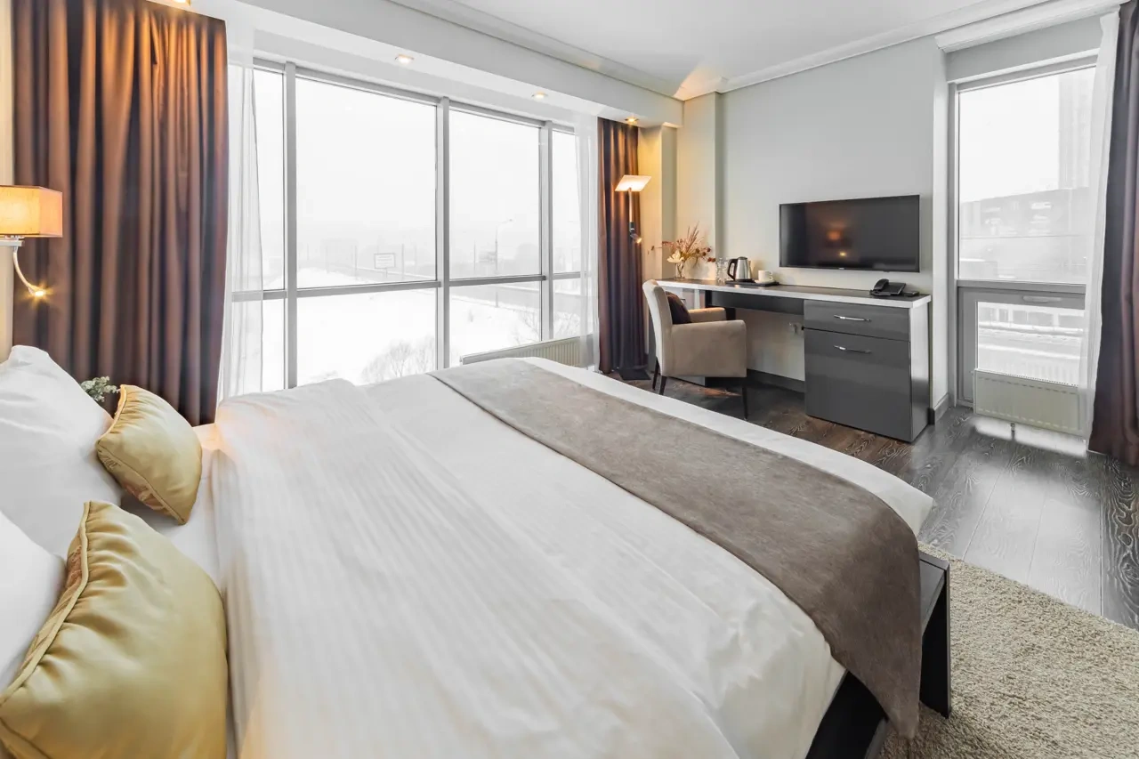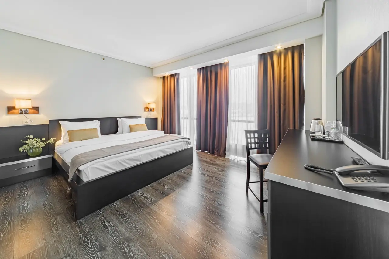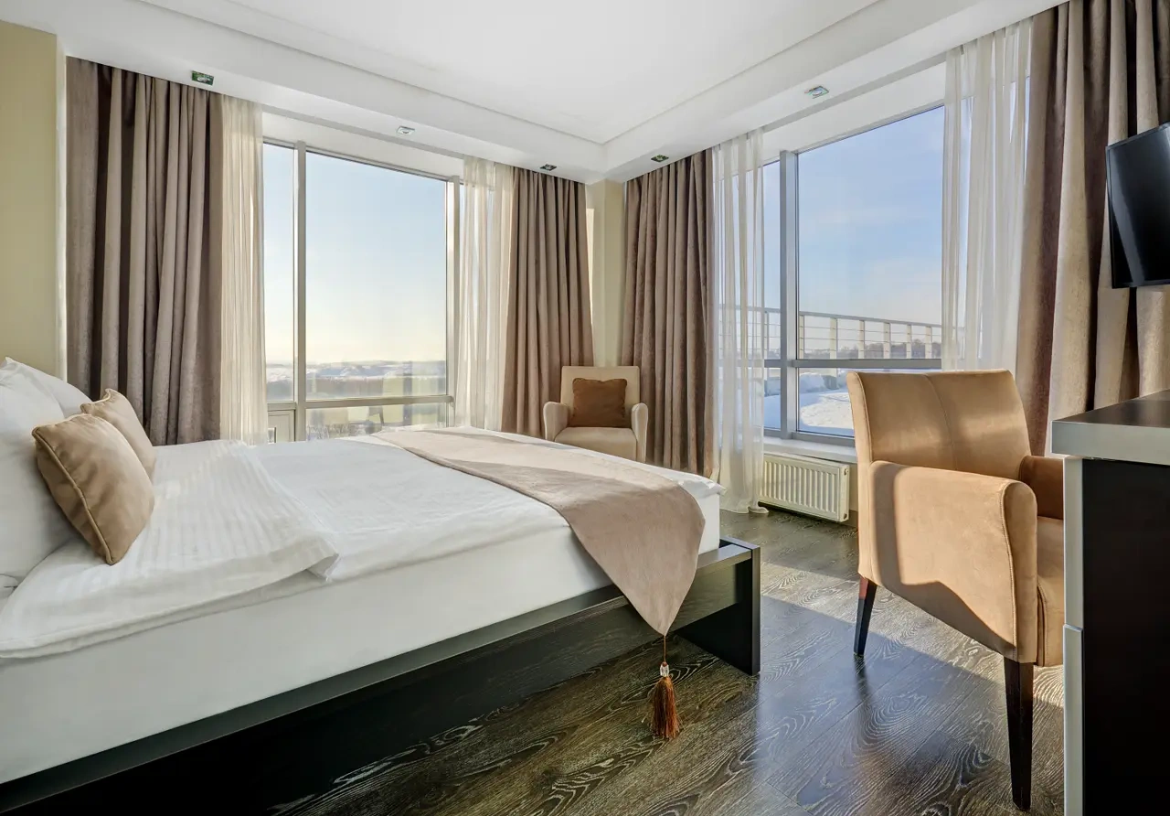 Номерной фонд представлен 102 современными номерами 3 категорий: "Стандарт", "Бизнес", "Люкс", большая часть из которых имеет панорамные окна.